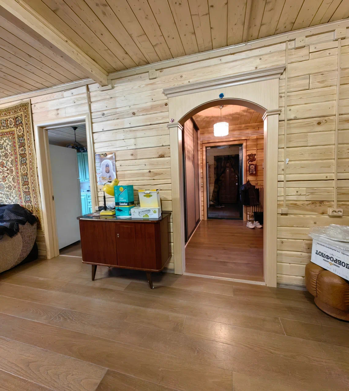 Продается коттедж площадью 130 кв.м на участке 6 соток, дом построен из качественного бруса (20х20) в 2019 году. Перекрытие деревянное, облицован деревом, крыша металлочерепица, фундамент ленточный. Планировка: зал 30 кв. м, кухня 15 кв. м, 2 спальни по 15 кв.м, холл 10 кв.м.