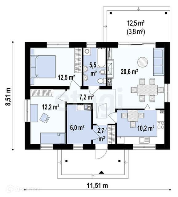 Общая площадь 86.7 м2