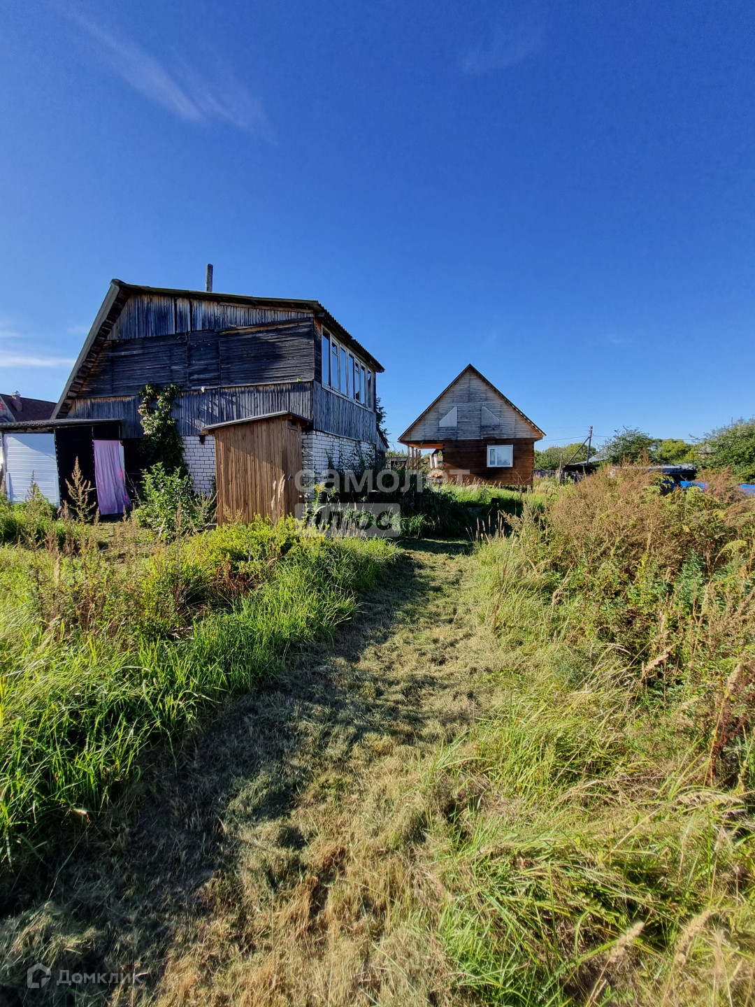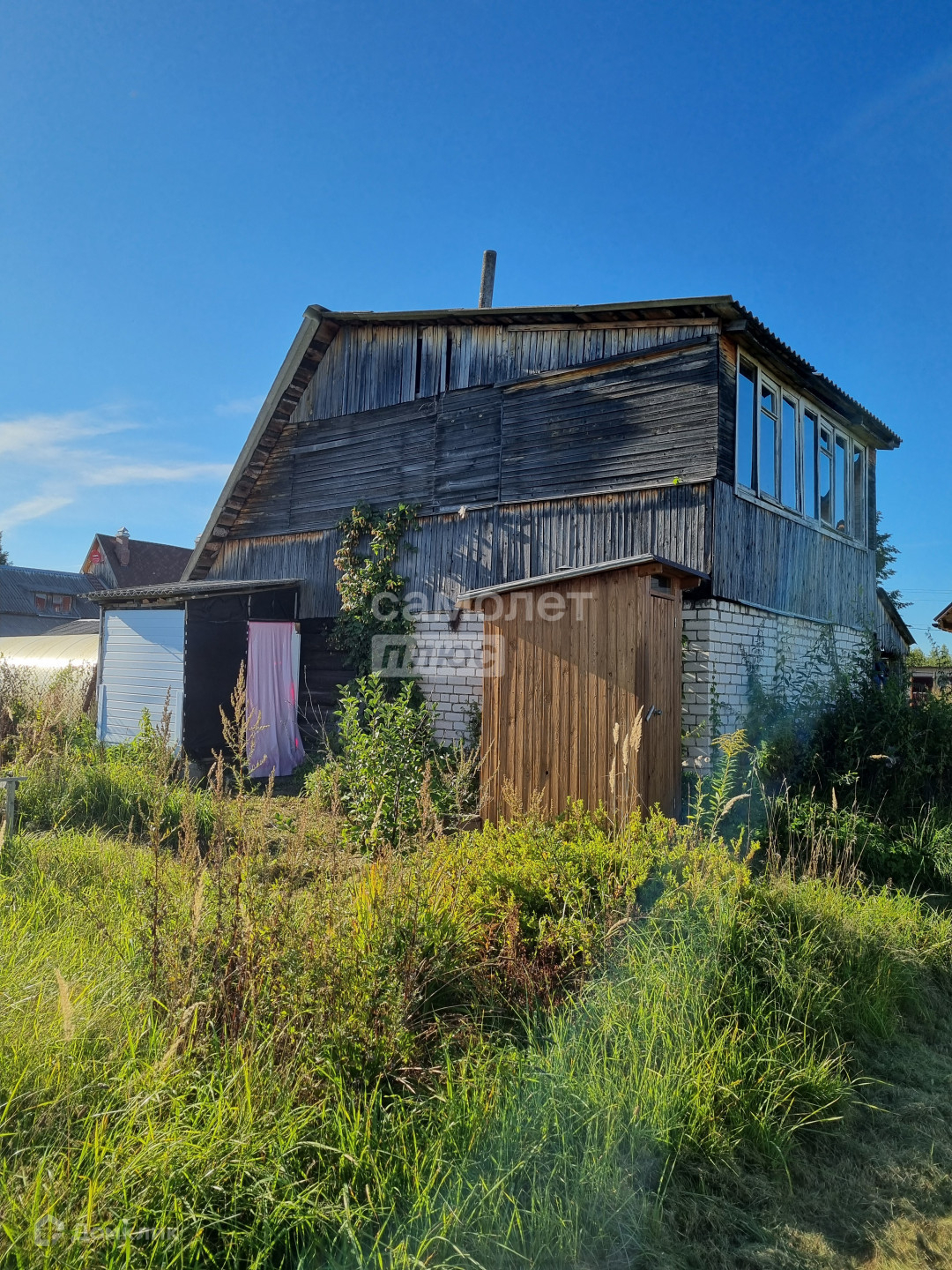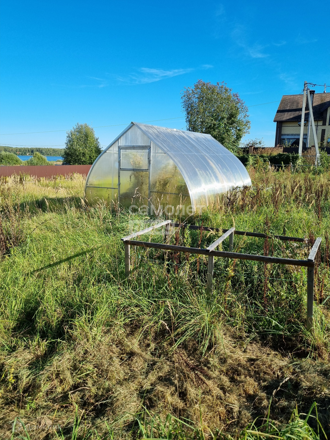 Огромная территория вокруг дома: 18 соток. Имеется двухэтажная баня, длительное время использовалась только для хранения инвентаря. На участке растут плодовые деревья груши, яблони, вишни, кусты смородины, крыжовника. Также установлена теплица. Территория огоржена.