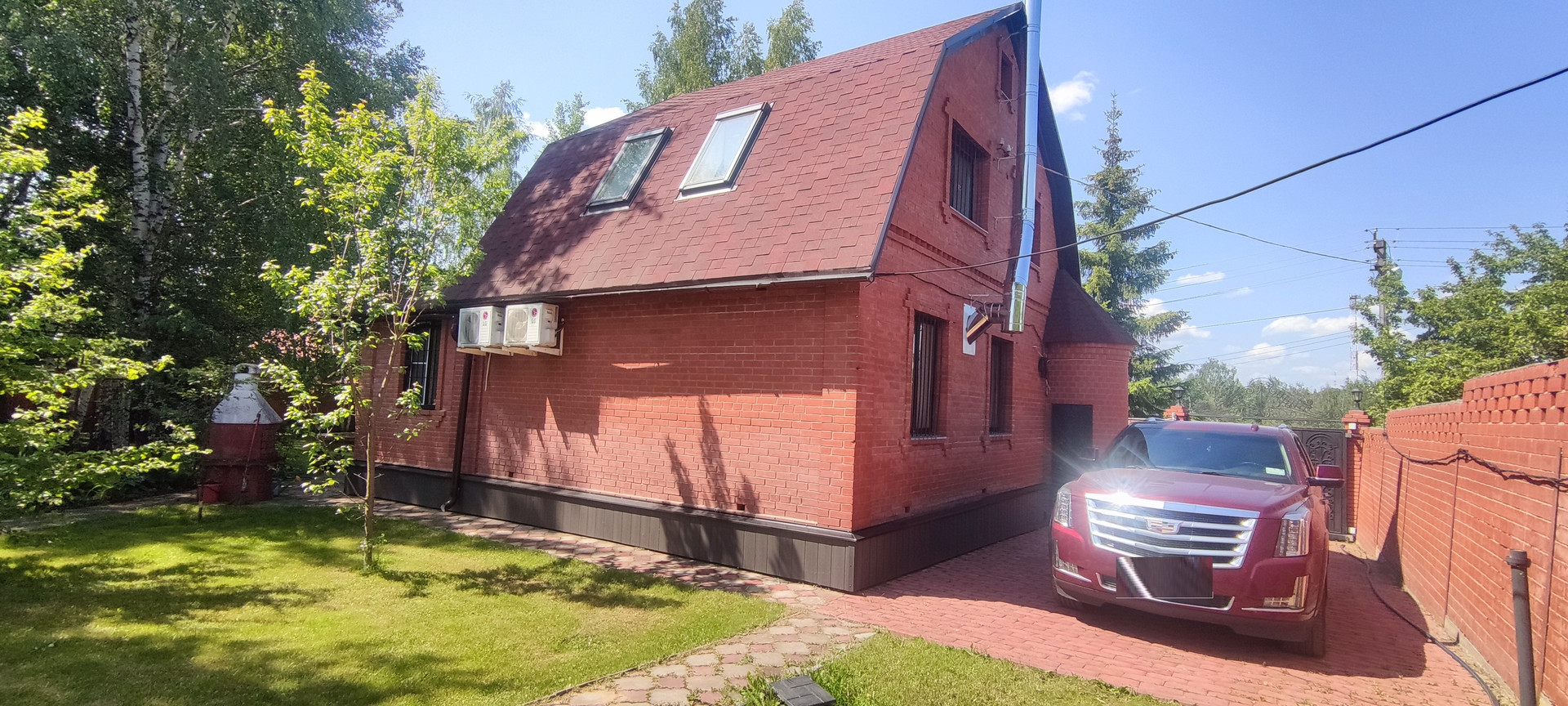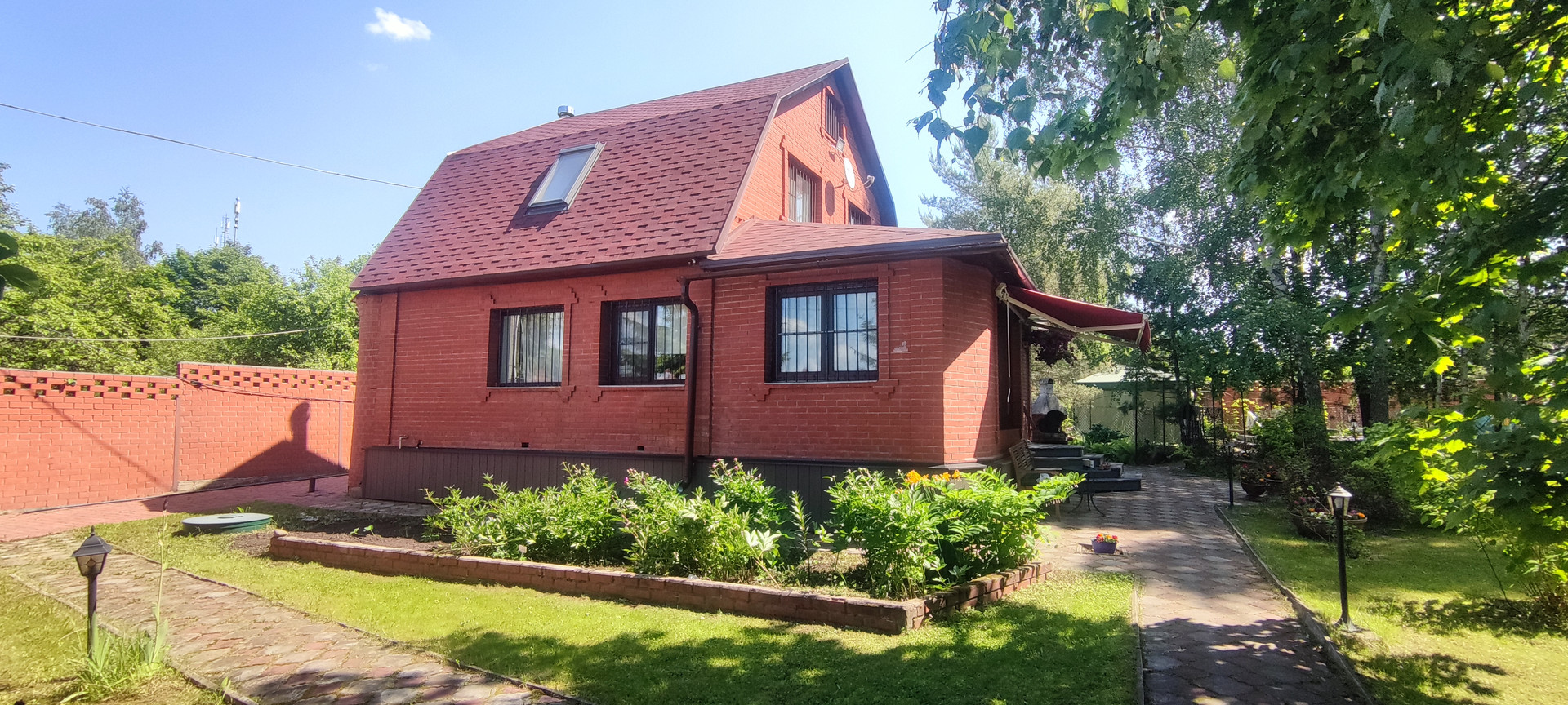 - Дом: кирпич 90 м2, 2-х этажный, фундамент, канализация-септик, центральная вода, есть отдельный колодец с насосом, перед домом маркиза,
