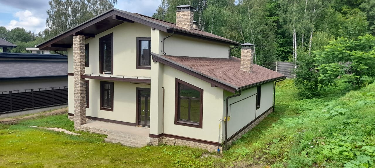 Продается дом в уютном, обжитом,  современном коттеджном поселке Яхромские горки 2. Номер участка 93. Дом полностью построен. Под внутреннюю отделку. Фундамент монолитный, железобетонный, свайно-ростверковый,  Каркас дома: монолитные железобетонные колонны с заполнением блоками ячеистого бетона и устройством утеплителя(10). Вентиляционные каналы и дымоход из кирпича. Кровля - полностью утепленная по "пирогу" TEGOLA (мягкая кровля). Оконные и дверные проемы двойные пластиковые стеклопакеты. Наружная отделка дома утеплитель, штукатурка по технологии Мокрый фасад, облицовка по фасаду искусственным камнем.   Вода, канализация, электричество  и газ находятся в доме и подключены. Канализация поселковая, центральная. Очистные сооружения вынесены за пределы поселка. Чудесный вид из окон на небольшое озеро. Участок ЛЕСНОЙ и  находится в центре поселка. На территории поселка постоянно работает охрана и видеонаблюдение; бытовые проблемы решают дежурные сотрудники технических служб. Территория огорожена по периметру и охраняется.