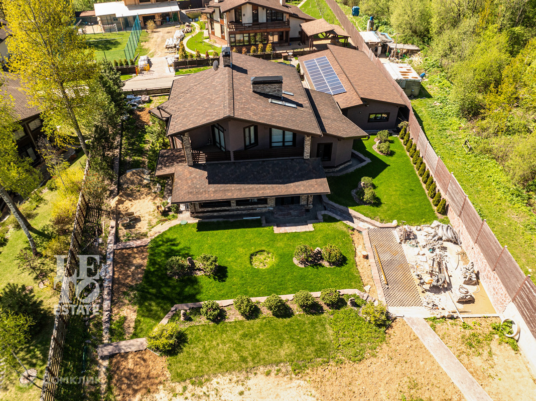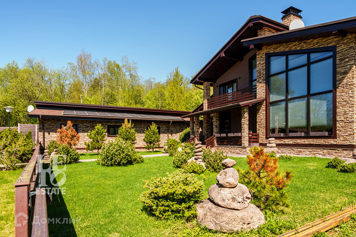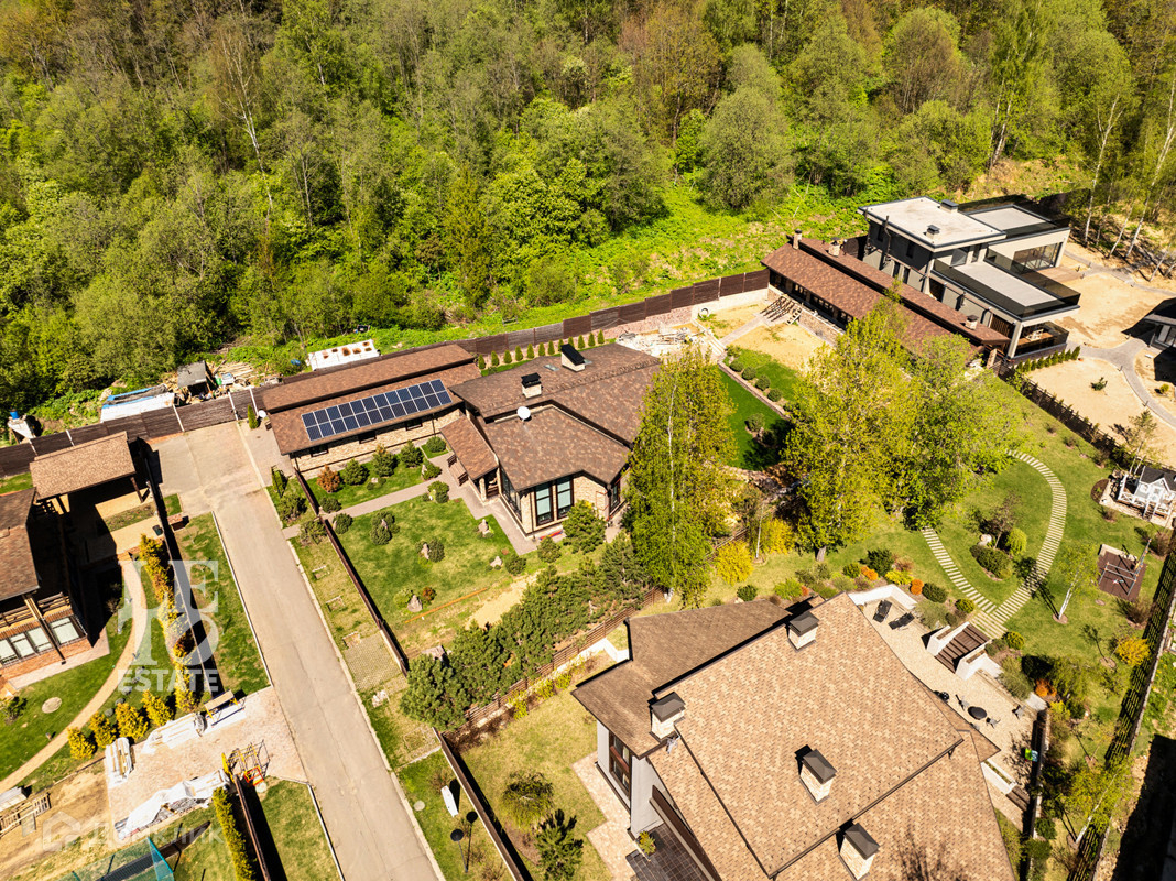 На земельном участке (18 соток) выполнен ландшафтный дизайн с посажеными горными соснами. Есть свой выход в лес и водоему. На кровле установлены солнечные батареи с подачей дополнительной энергии (6 квт) на первый этаж дома. Теплый гараж на 4 машиноместа.