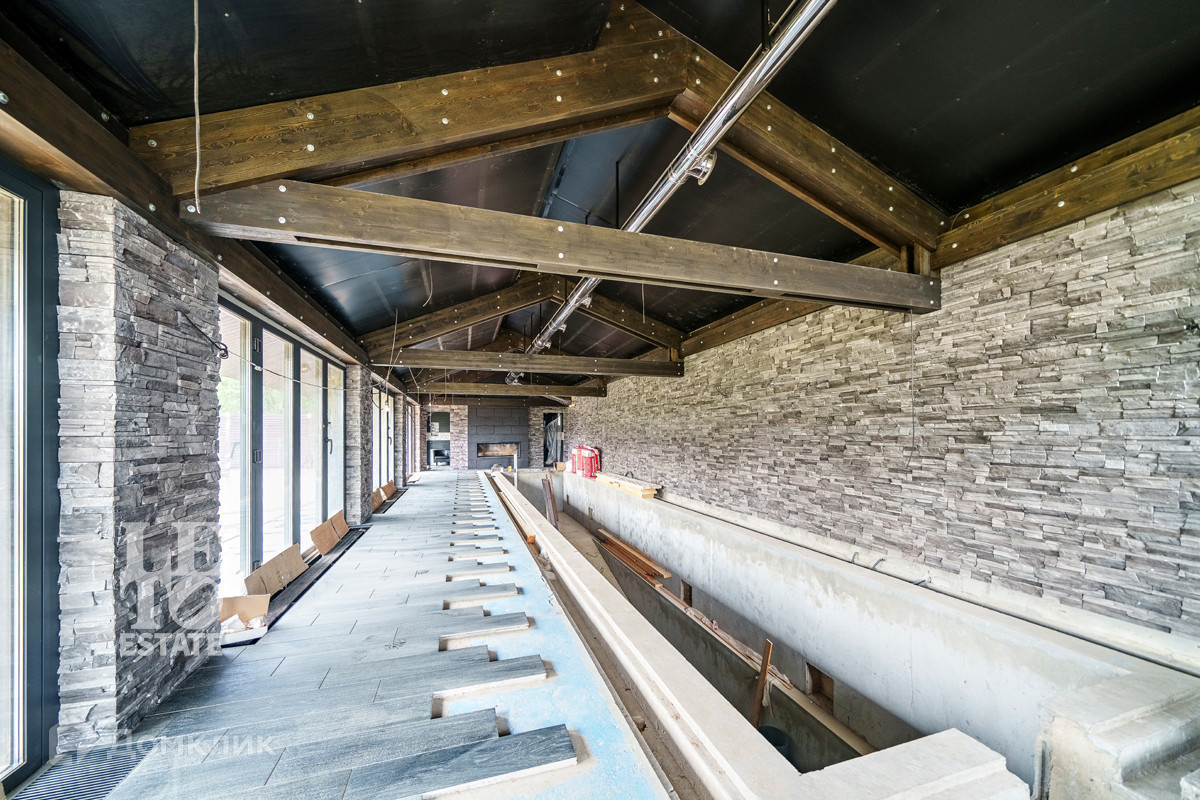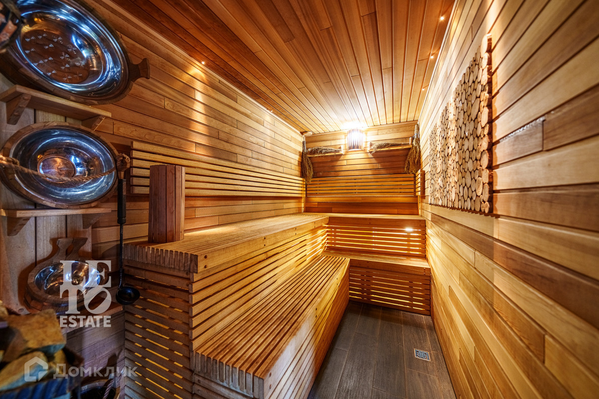 Отдельно от основного дома возведена своя спа-зона, с сауной, бассейном с противотоком, лаундж зоной и санузлом. Сауна отделана лиственницей, с дровяной печью (топочная с отдельным входом), раздвижные панорамные окна для использования в летнее время. Чаша бассейна - 2.5 х 15 метров, с заглублением до 3.5 метров.
