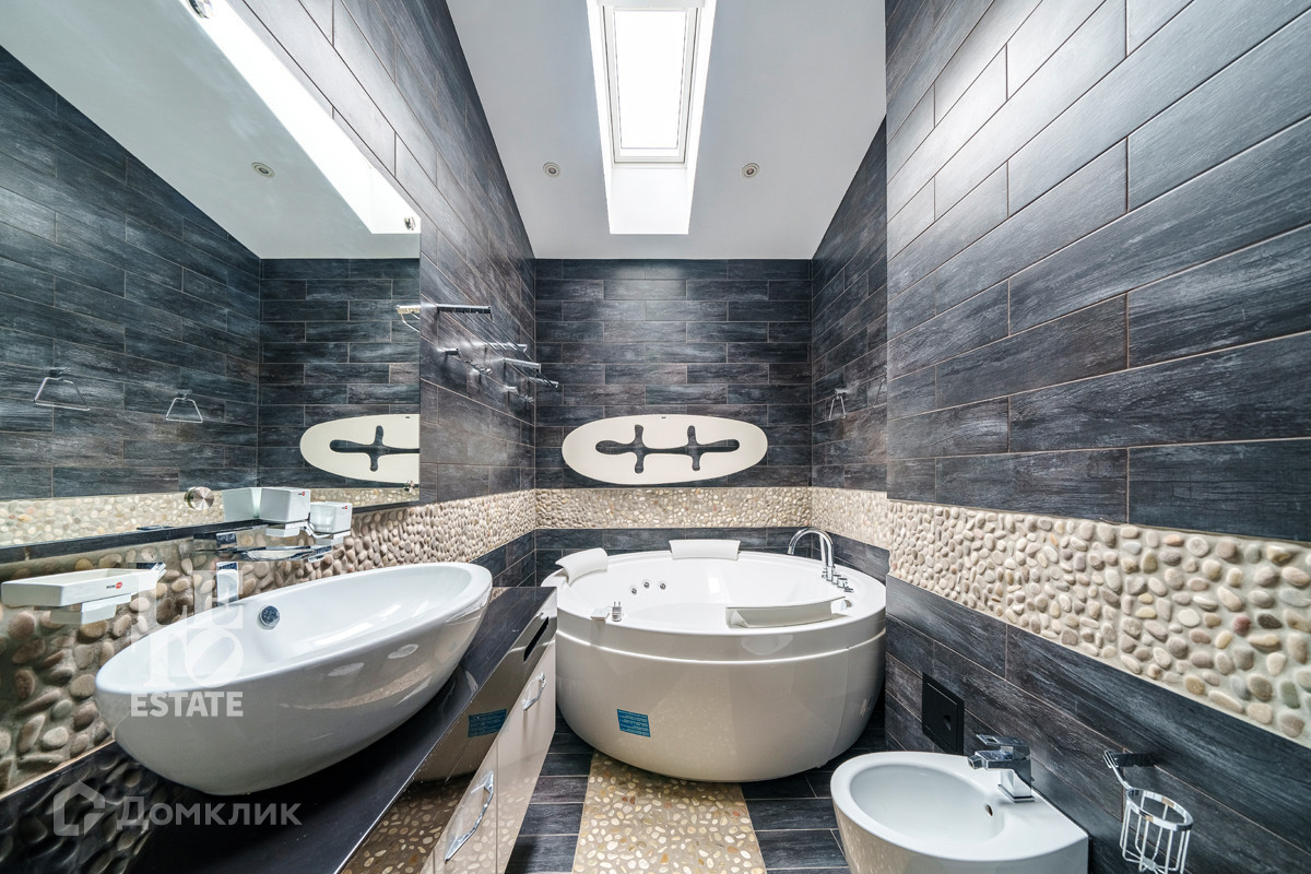 На втором этаже просторный санузел с джакузи и подогревом пола, дизайнерский свет по индивидуальному проекту.