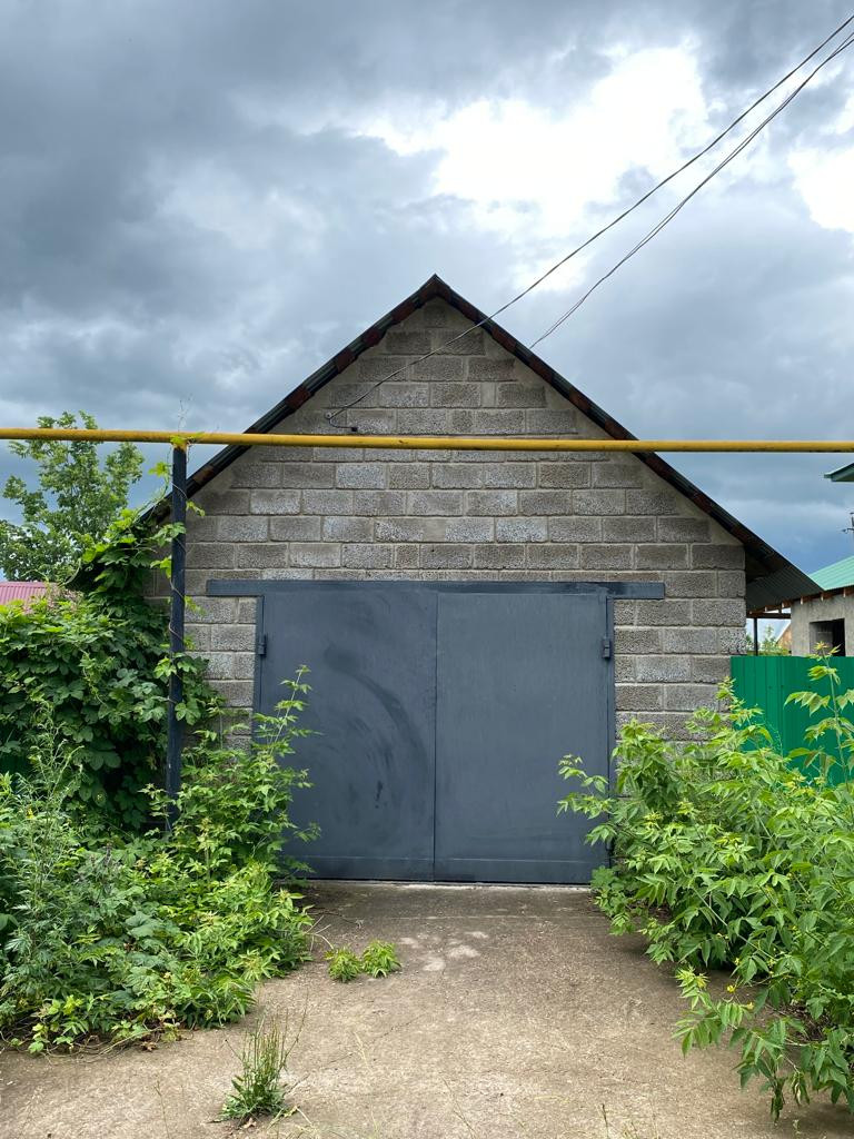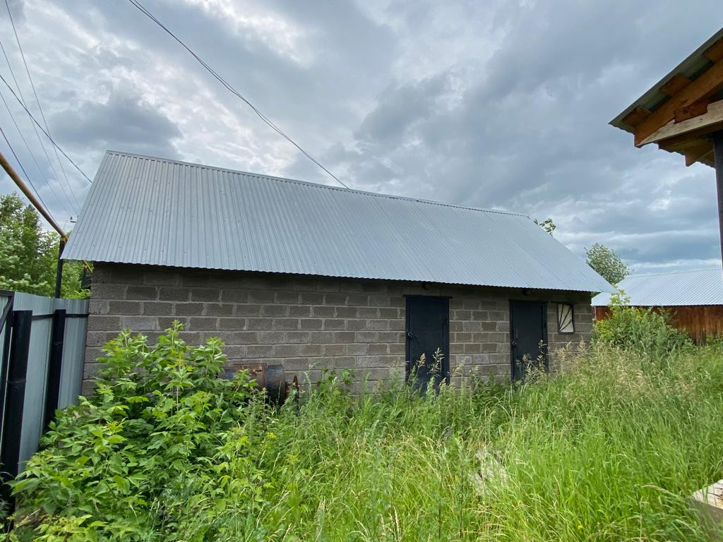 Гараж на одно машиноместо. Плюс помещение под летнюю кухню - установлены черновые полы, потолок. Домик под хозпостройку ( сруб заведен под крышу, сделаны полы, потолок, стены- планировалось в дальнейшем сделать баню).