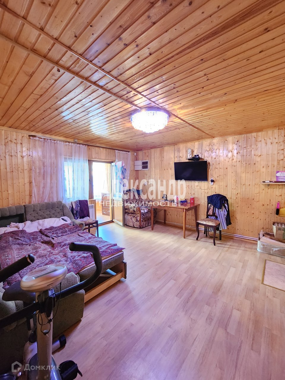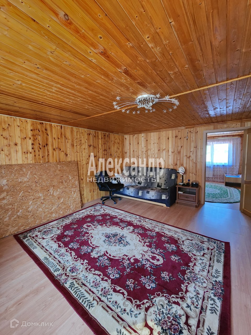 Внутри дом обшит вагонкой.