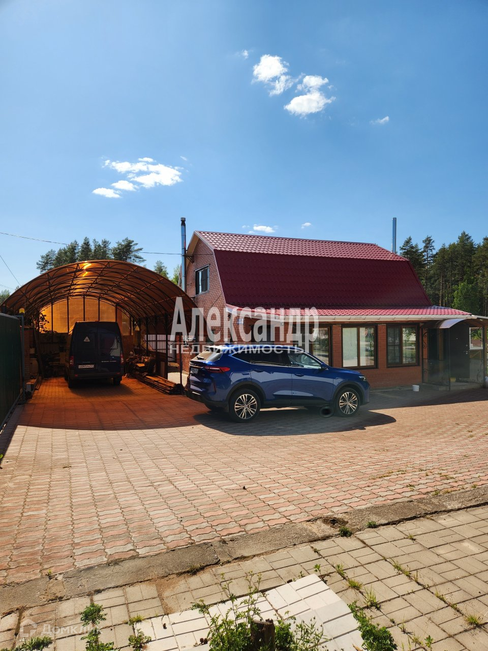 К дому пристроен навес для машины.