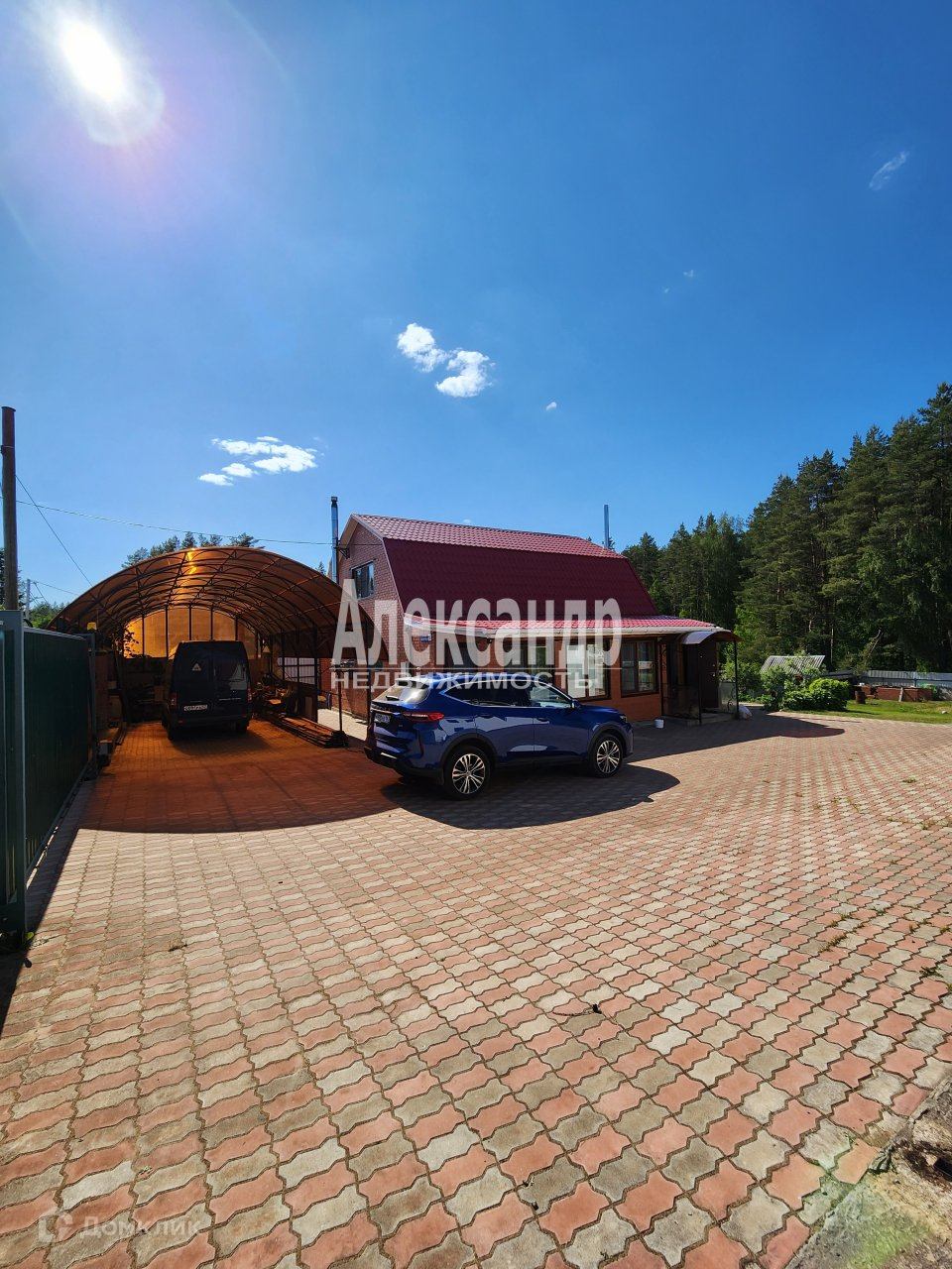 Участок огорожен, территория возле дома выложена тротуарной плиткой.