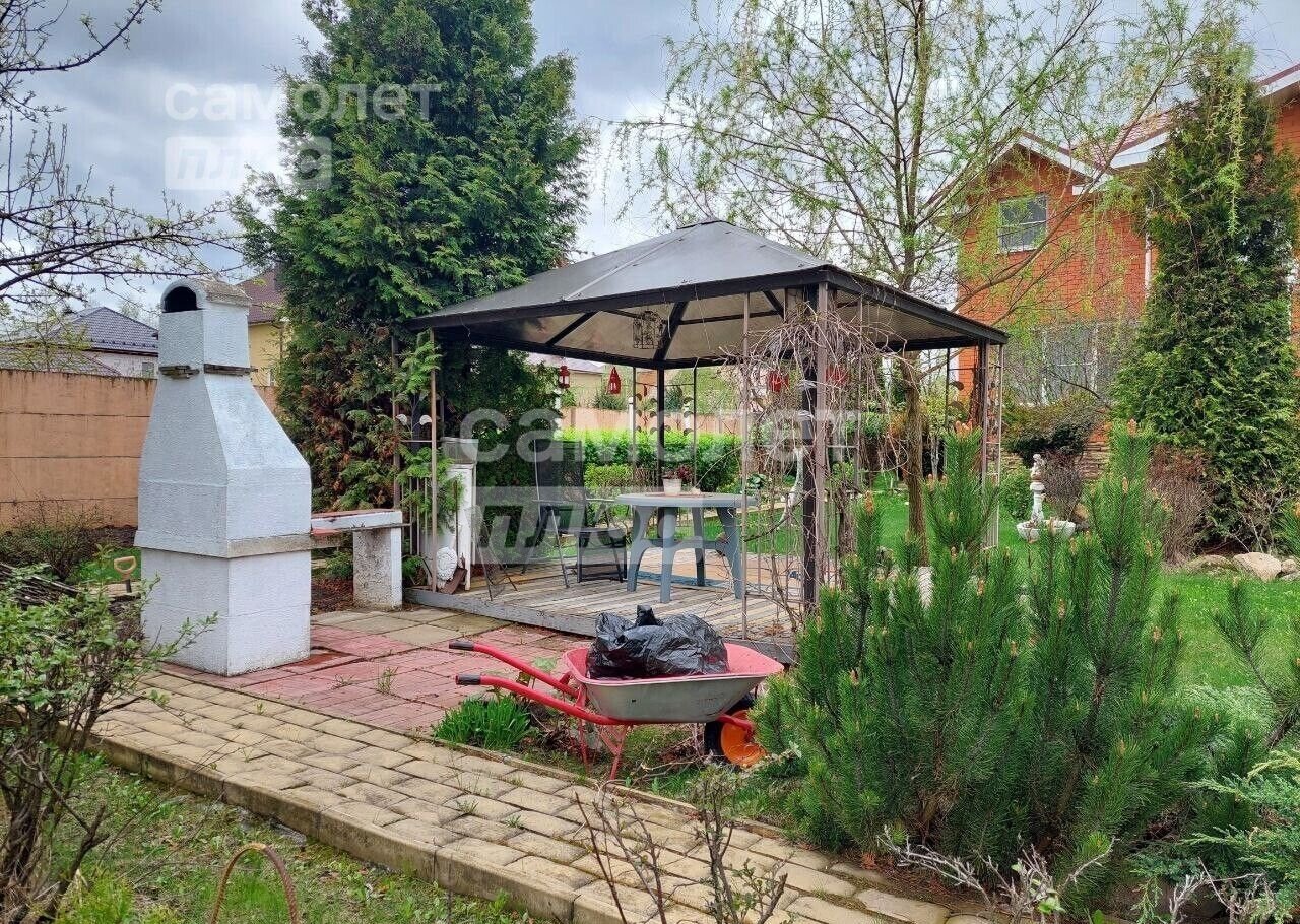Для семейного отдыха или посиделок с друзьями на участке расположена просторная, застекленная беседка с мангалом. Подсобные постройки распределены по периметру участка.