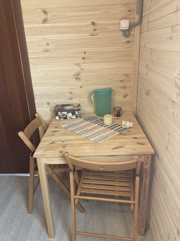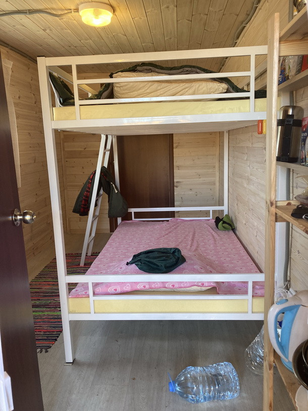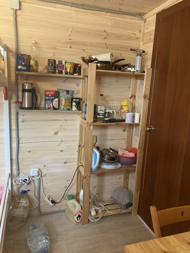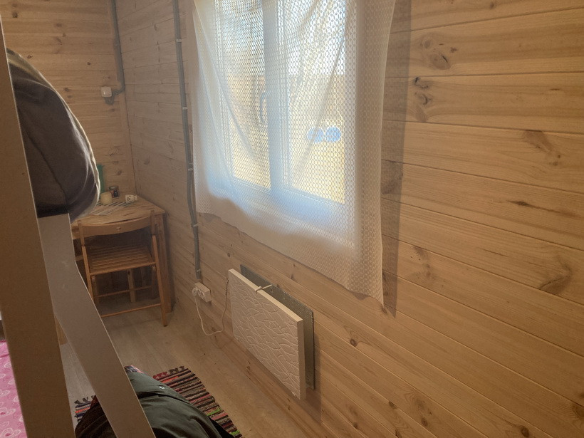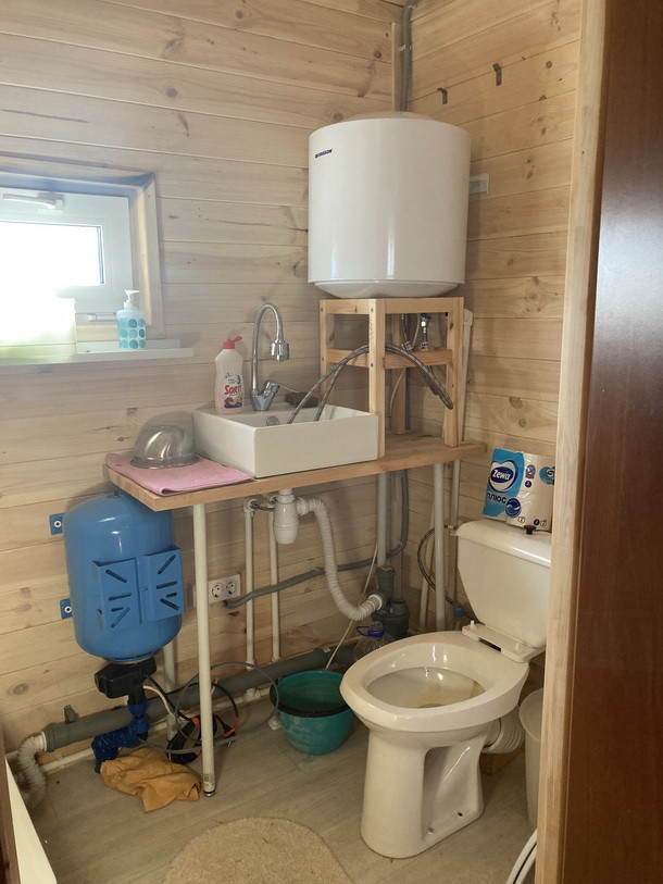 На участке имеется Вагончик сделан под заказ, материалы внутренней отделки полностью экологичные «вагонка», имеется 3 отдельные зоны: Входная прихожая(кладовка) 1,5м*2,4м, Основная комната 4м*2,4м с двухуровневой 1,5-спальной кроватью (можно расположиться в четвером), санузел: туалет с душем и умывальником, вода полностью автономная с гидроаккумулятором и горячей водой (водонагреватель), канализацию- выгребная яма, закопано 2 кольца по 1,5 метра. Вода проведена в Вагончик под землей с теплым кабелем на глубине примерно 50см, можно пользоваться круглый год. В вагончике полностью проведена проводка по госту, везде лежит качественный линолеум. В основной комнате проложен теплый пол «ТЕПЛОЛЮКС» с гарантией 15 лет, на стене у окна весит пожаробезопасный обогреватель. Вагончик полностью мебелирован (стол, стулья, стеллаж), полностью приспособен для пребывание длительное время, даже в прохладное время.