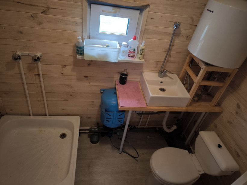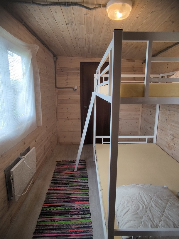 На участке имеется Вагончик сделан под заказ, материалы внутренней отделки полностью экологичные «вагонка», имеется 3 отдельные зоны: Входная прихожая(кладовка) 1,5м*2,4м, Основная комната 4м*2,4м с двухуровневой 1,5-спальной кроватью (можно расположиться в четвером), санузел: туалет с душем и умывальником, вода полностью автономная с гидроаккумулятором и горячей водой (водонагреватель), канализацию- выгребная яма, закопано 2 кольца по 1,5 метра. Вода проведена в Вагончик под землей с теплым кабелем на глубине примерно 50см, можно пользоваться круглый год. В вагончике полностью проведена проводка по госту, везде лежит качественный линолеум. В основной комнате проложен теплый пол «ТЕПЛОЛЮКС» с гарантией 15 лет, на стене у окна весит пожаробезопасный обогреватель. Вагончик полностью мебелирован (стол, стулья, стеллаж), полностью приспособен для пребывание длительное время, даже в прохладное время.