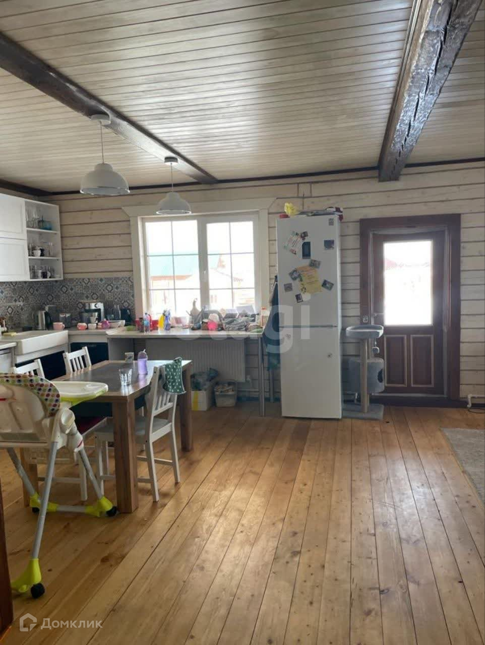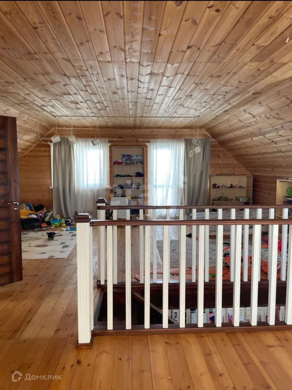 Продается светлый и большой двухэтажный из массивного бруса дом, площадью 157,5 кв.м. на земле в 8 соток. На первом этаже холл, прихожая, техпомещение, санузел, просторная спальня, кухня и гостиная. Второй этаж мансардного типа с отдельным санузлом. Окна все пластиковые с двухкамерным стеклопакетом. С обоих торцов дома террасы 16.6 и 25.5 кв.м, два балкона на обе стороны дома, площадью 12.5 кв.м. каждый, также открытая терраса 60 кв.м. В доме есть все: электричество заведено - разводка выполнена, вода подключена, отопление включено - электрокотел, радиаторы, теплые полы, газ проведен к участку, подается непосредственно в дом, канализация работает - септик выполнен из бетонных колец в соответствии с требованиями санитарно-экологических норм. В доме остается кухонных гарнитур. Участок ровный, вспахан и огорожен. Есть гараж, площадью 6 на 6 метров. За домом имеется второй тупиковый заезд на участок. Дорогу регулярно чистят, мусор вывозят. До города 5 км., асфальтобетонный подъезд к дому.