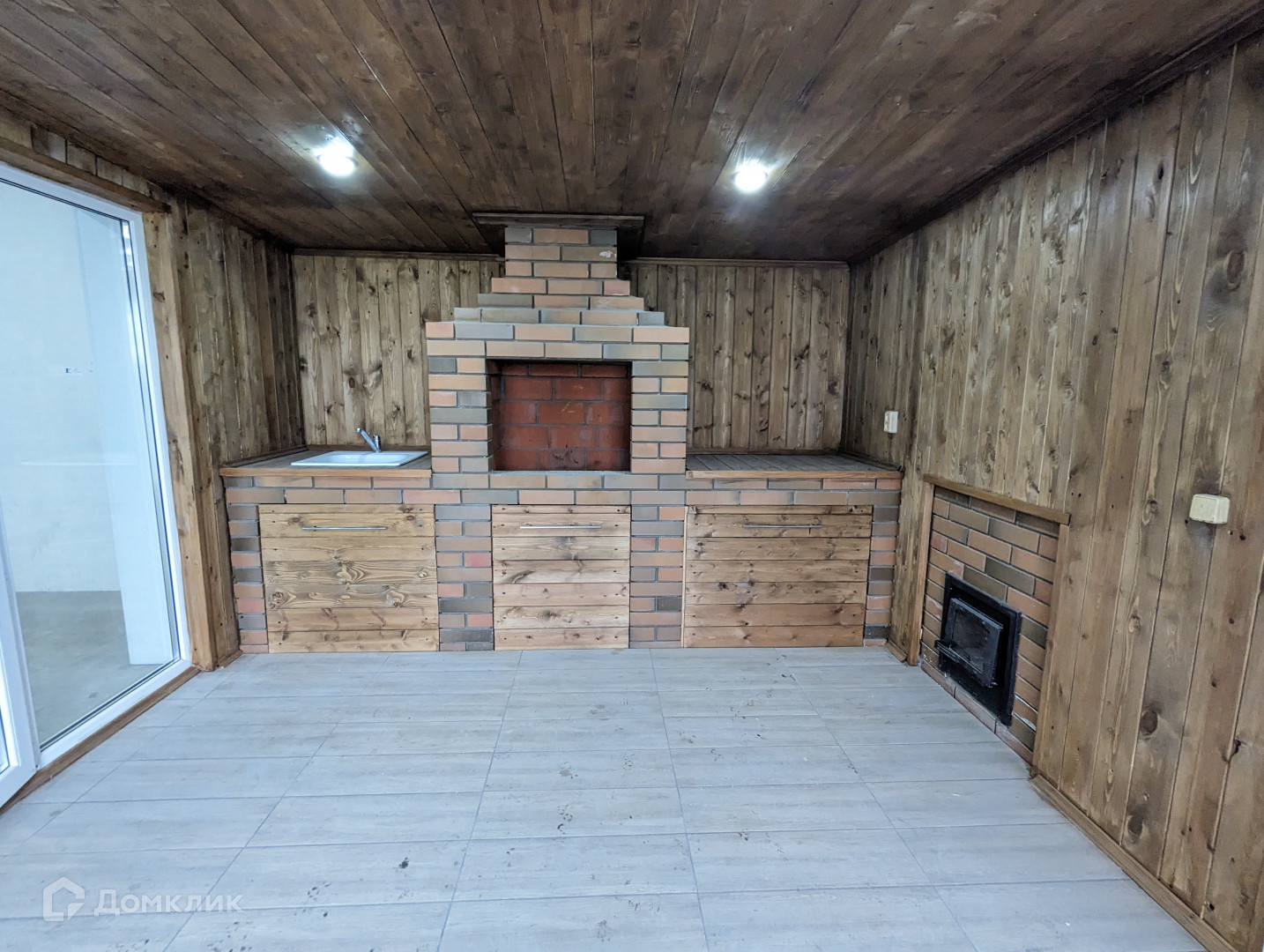Окна во всём доме от пола панорамные, мульти функциональные.  Натяжной потолок со светильниками по всему периметру дому. Установлены откосы оконные, гардины, розетки и выключатели. Отоплением является тёплый пол.