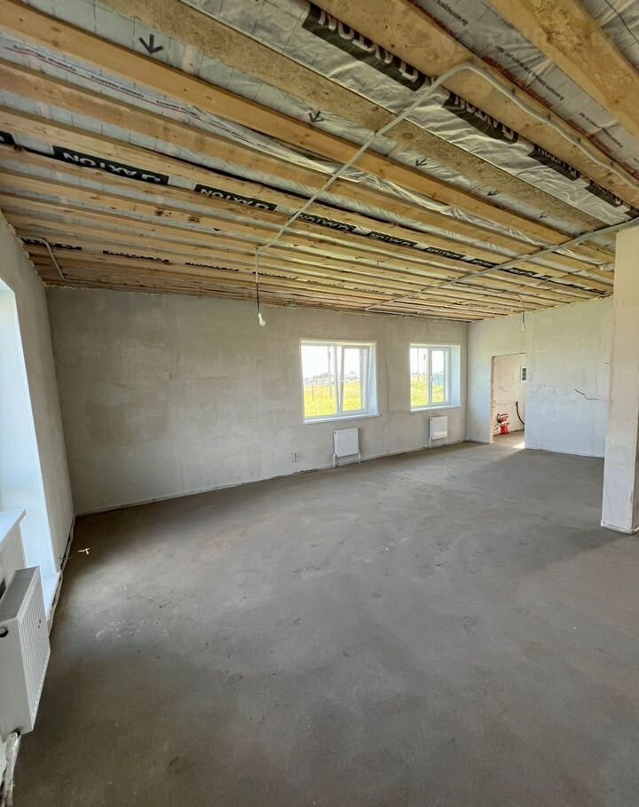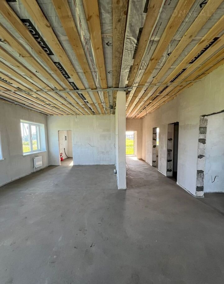 Cам дoм пострoeн нa ленточном фундаменте. Произведена обратная засыпка со всеми коммуникациями, и залита плита(черновые полы) идеально в уровень.
