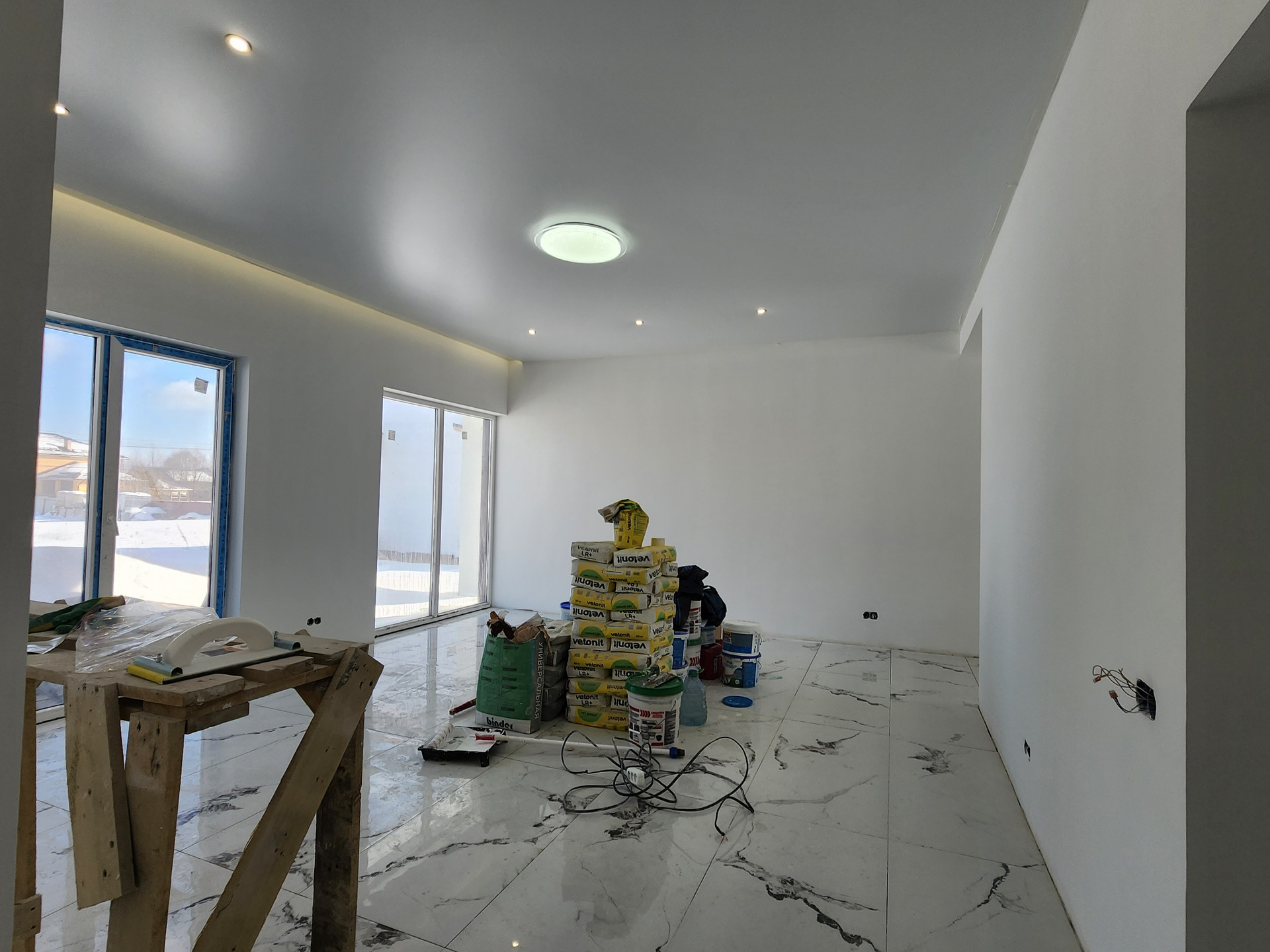 - Современные окна в пол, которые наполняют дом светом и теплом,