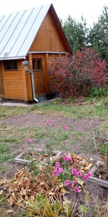 Участок правильной квадратной формы. На участке построена баня, свой колодец. На участке высажены кусты, плодовые деревья, установлены теплицы..