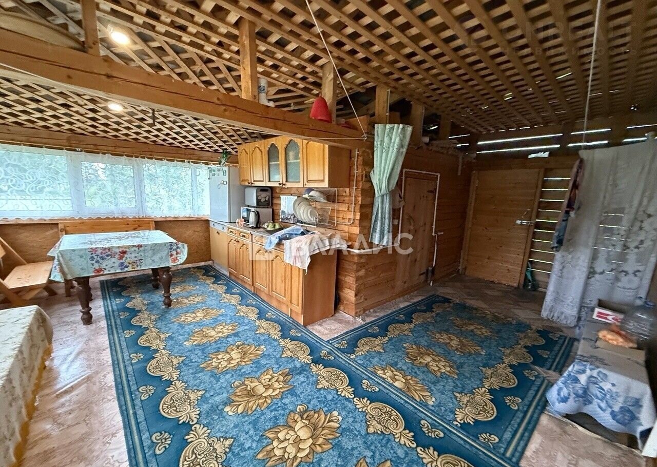 В пристройке из бруса находится кухня и баня.