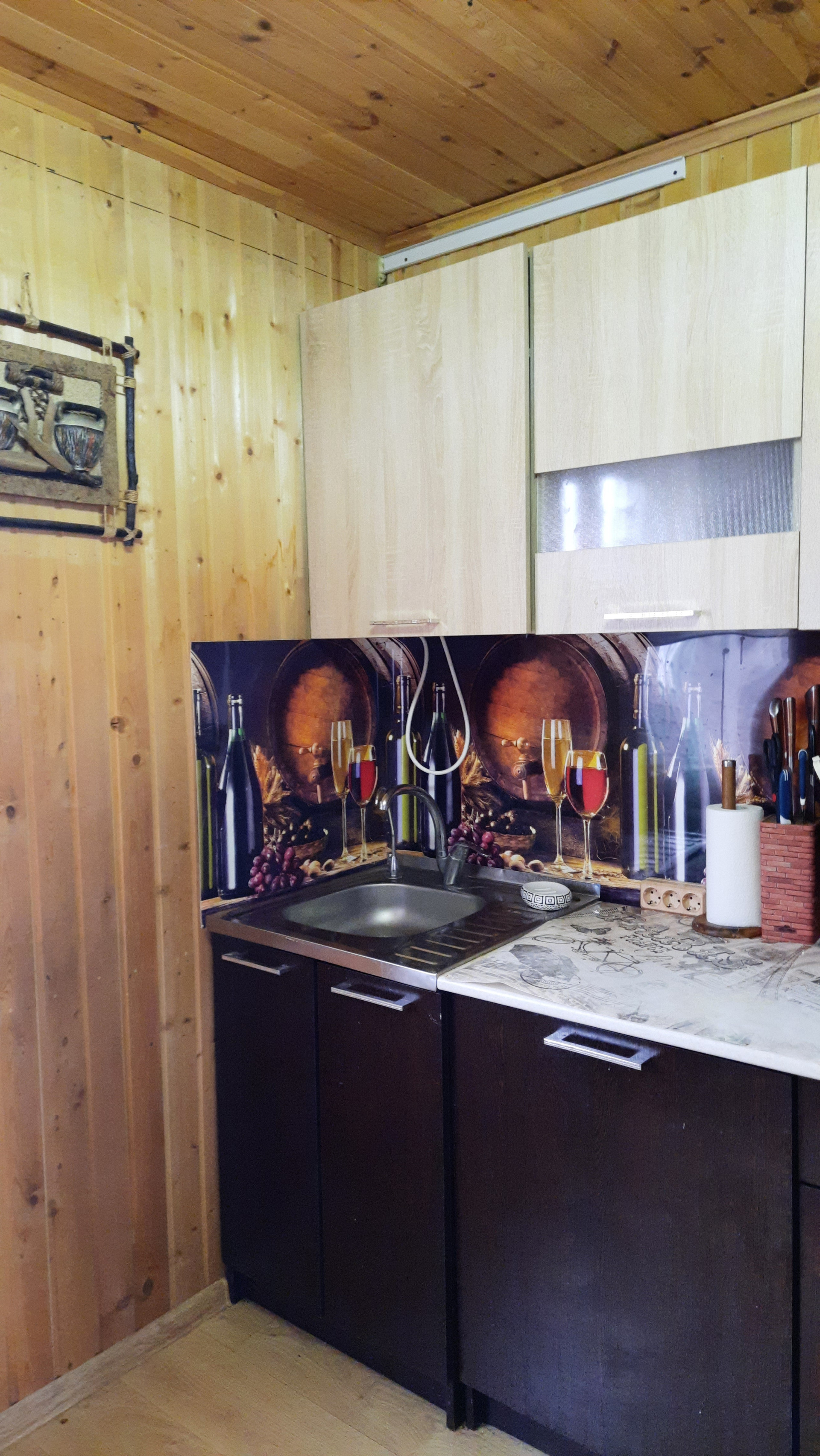 Планировка дома : 1 этаж. Высота потолков - 2,4 м. На первом этаже объединенная кухня-гостиная, в которой легко разместится большая семья с гостями. На первом этаже также есть гостевая спальня, ванная комната, большая гардеробная и техническое помещение. Санузел полностью укомплектован. Кухня обустроена всем необходимым. Установлена качественная система очистки воды. При входе в дом - терраса, закрытая мягкими окнами.