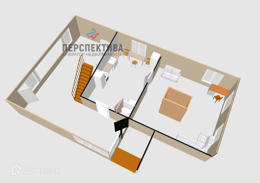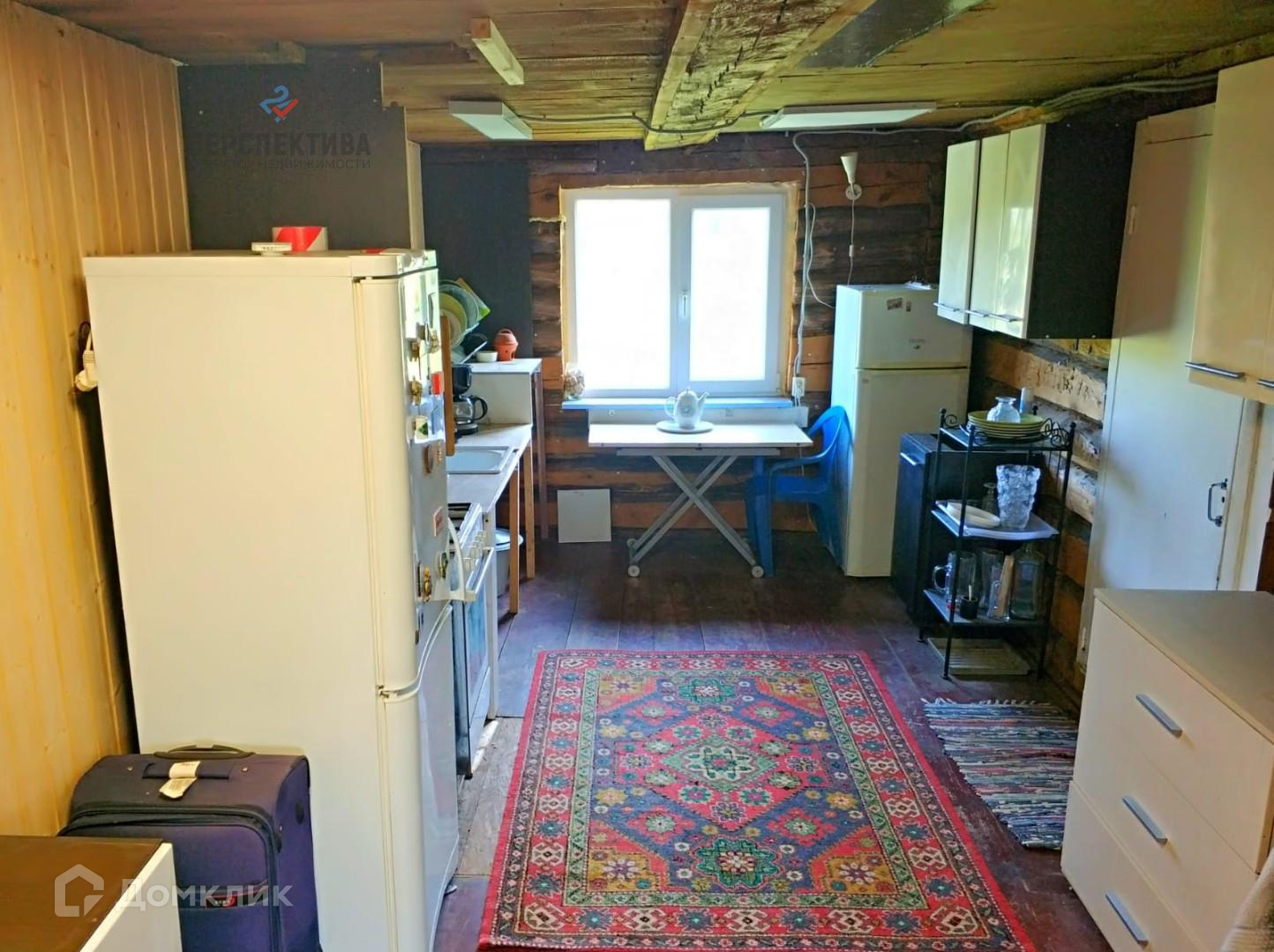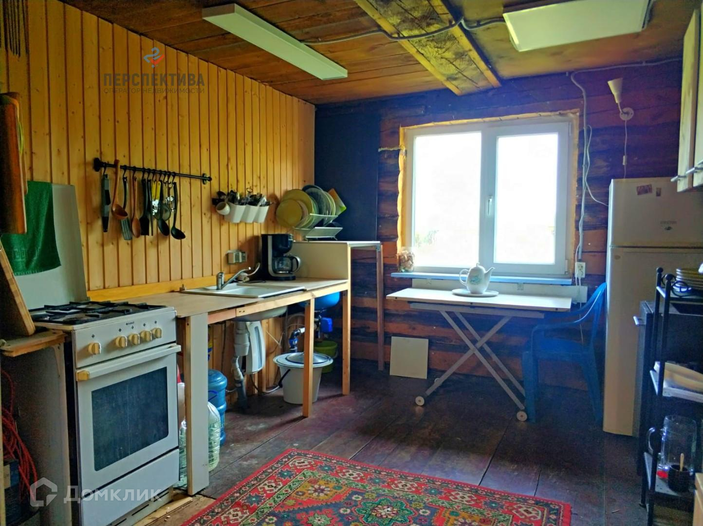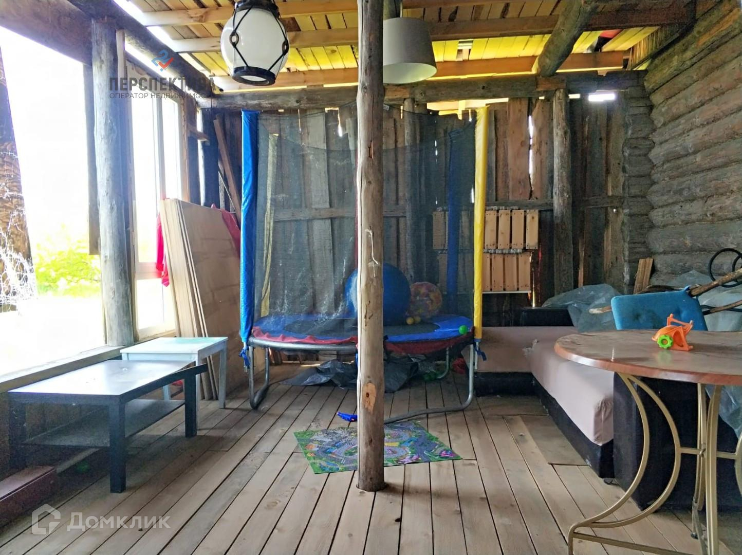 Рубленная часть дома состоит из большой комнаты (16м.кв.) и кухни (8м.кв.). Есть просторная летняя веранда, где открывается вид на поле с разнотравьем.