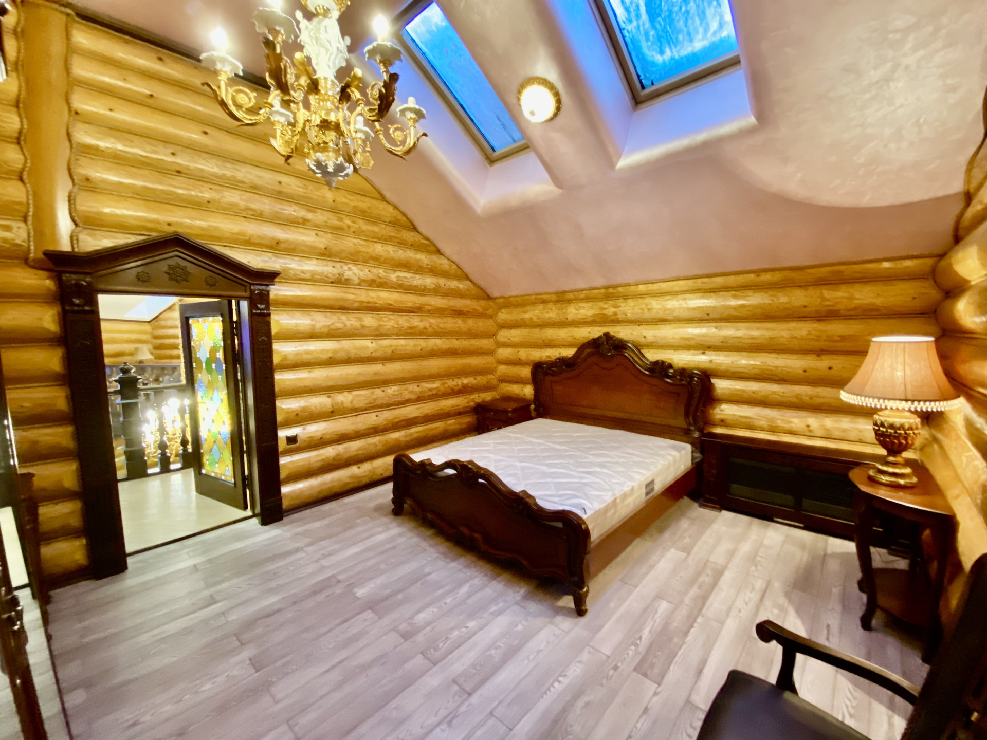 Впервые сдаётся бревенчатый дом люкс-класса, площадью 1150 М.кв. Дом расположен в экологически чистом районе на территории со своим прудом. Изначально дом строился под себя из дорогих и качественных материалов, роспись дома производилась народным художником.
