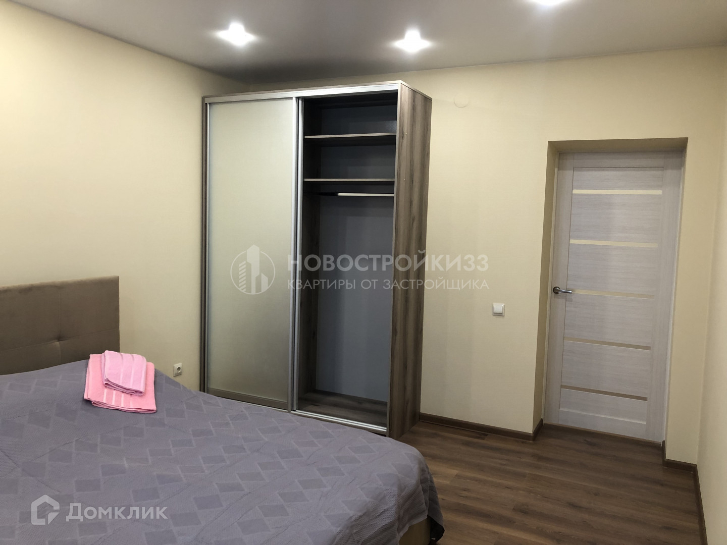 4 комнаты, в каждой есть двуспальная кровать, шкаф-купе, новое постельное белье, полотенца.