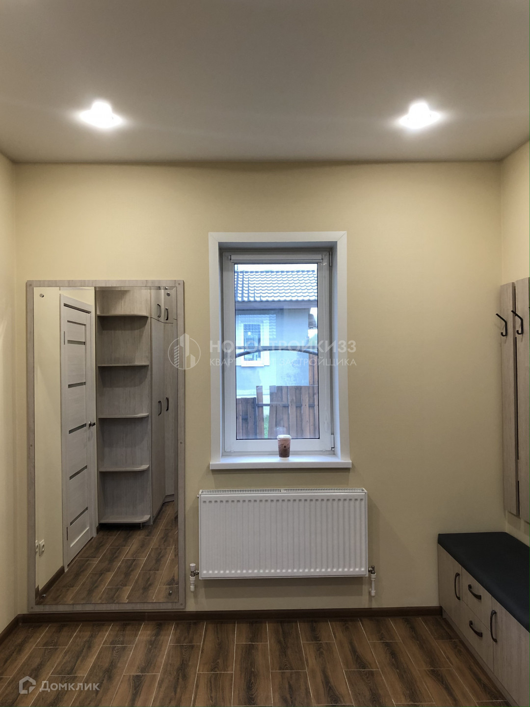 Просторная прихожая с местами хранения одежды.