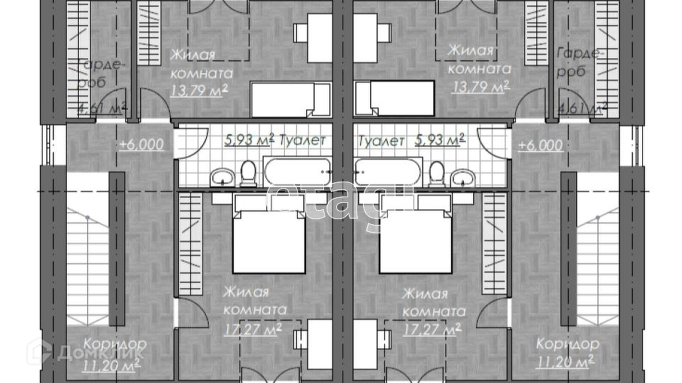Строительство предусматривает 7 дуплексных домов на своей, закрытой территории, участок на дуплекс 6 соток. Оборудованы места общего пользования.