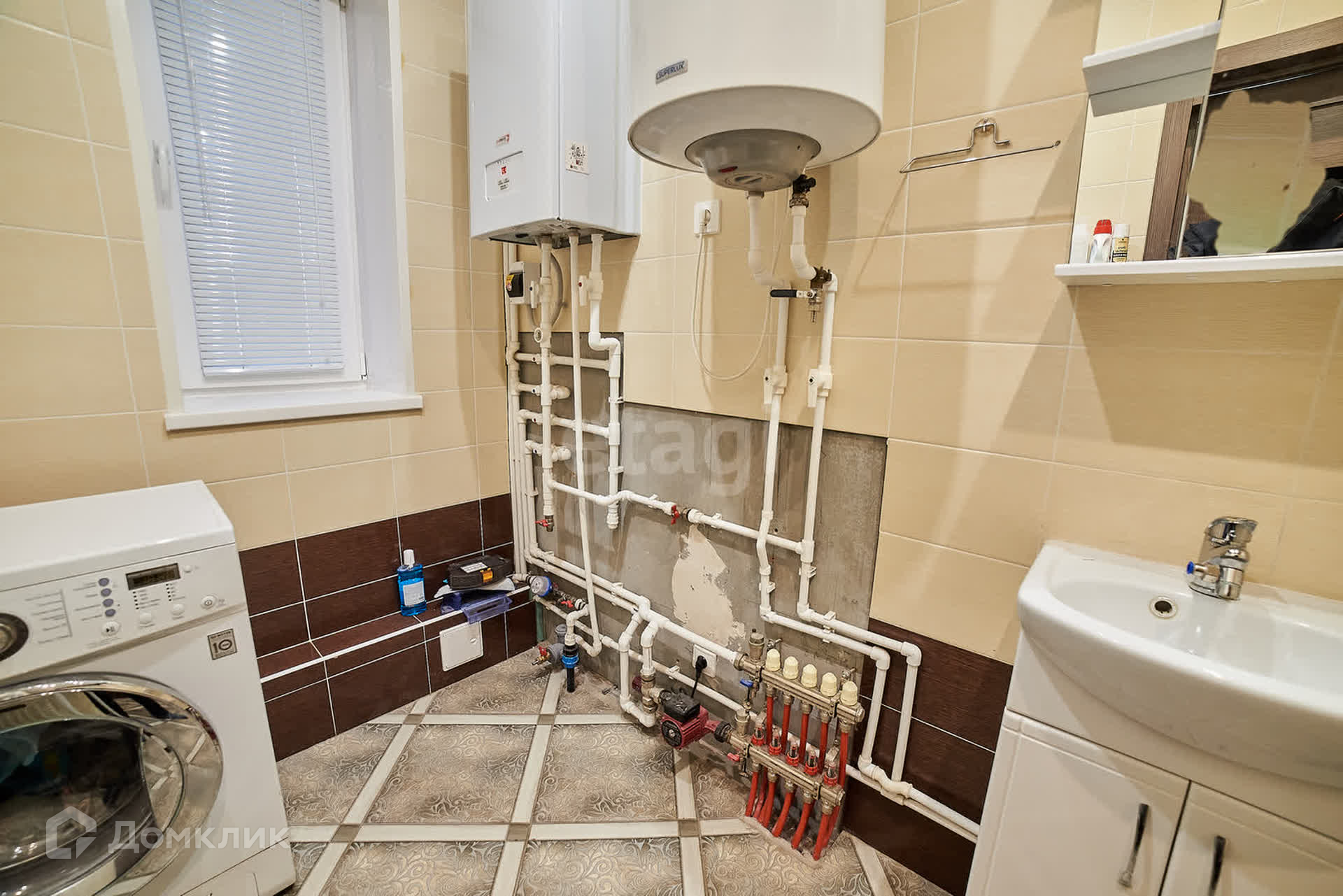По всему первому этажу теплые водяные полы (пол керамогранит).
