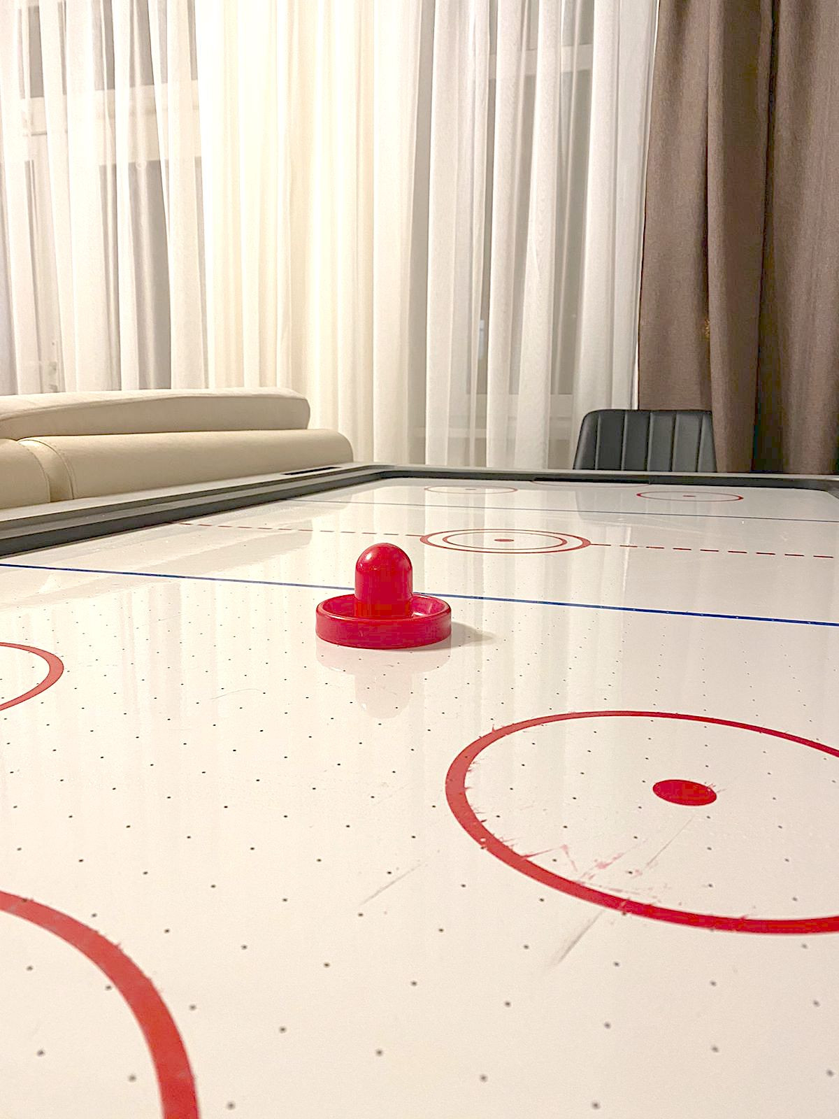 В гостиной огромный игровой стол - в кругу семьи и гостей можно играть в аэрохоккей и бильярд!