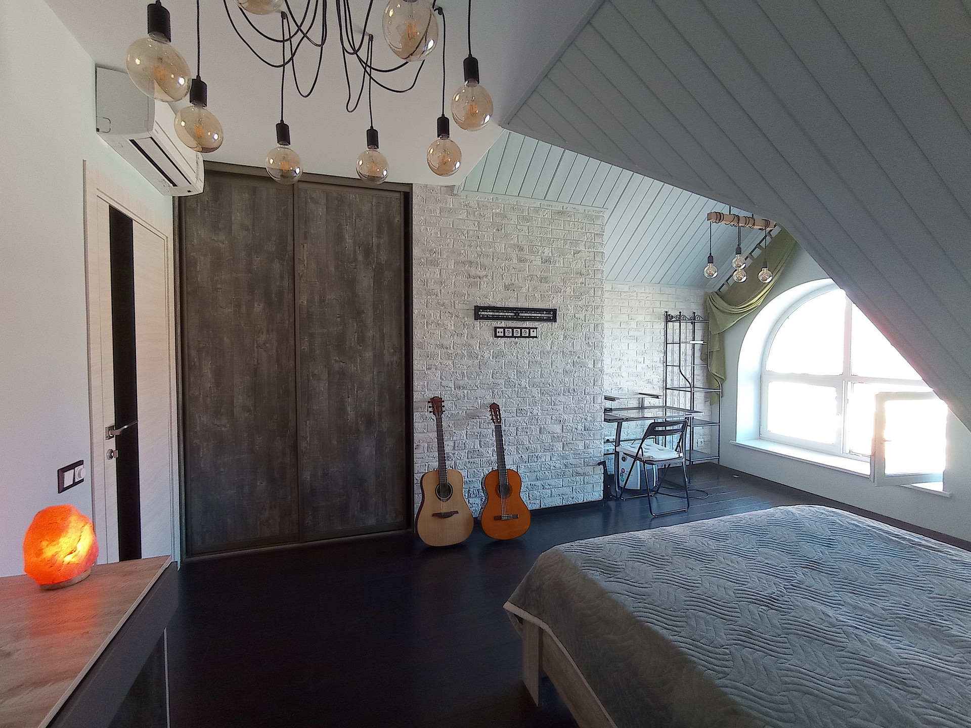 - спальня с двуспальной кроватью, рабочей зоной и вместительным гардеробом;