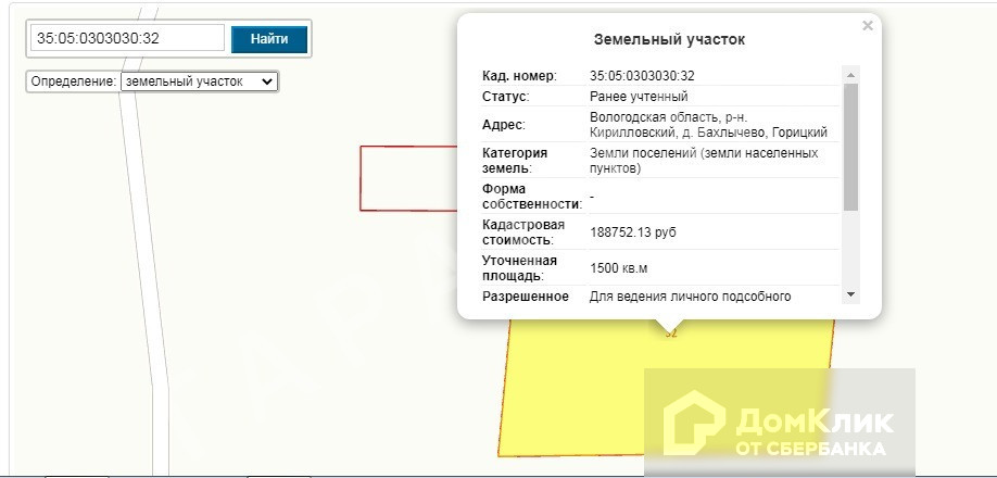 кадастровый номер участка 35:05:0303030:32
