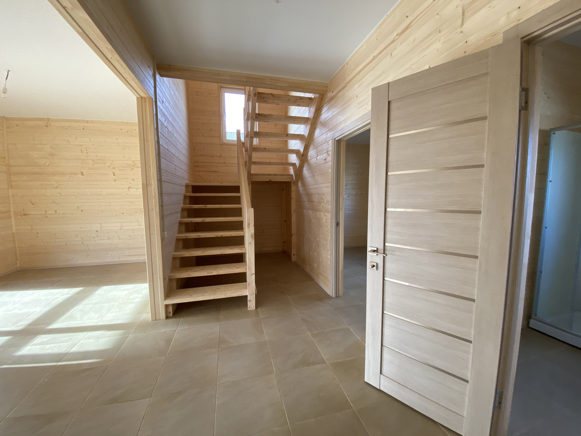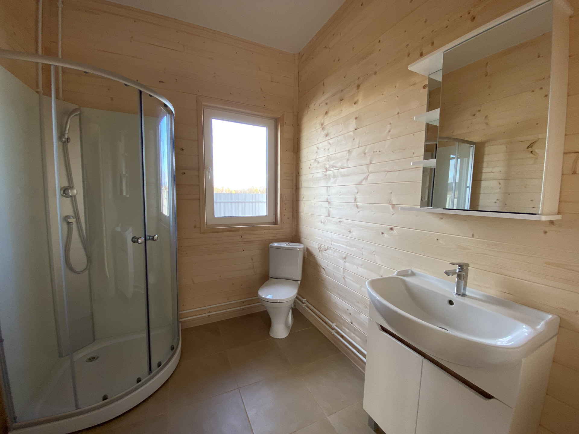 — Уложен керамогранит в санузлах, установлен а сантехника на 1-м этаже;