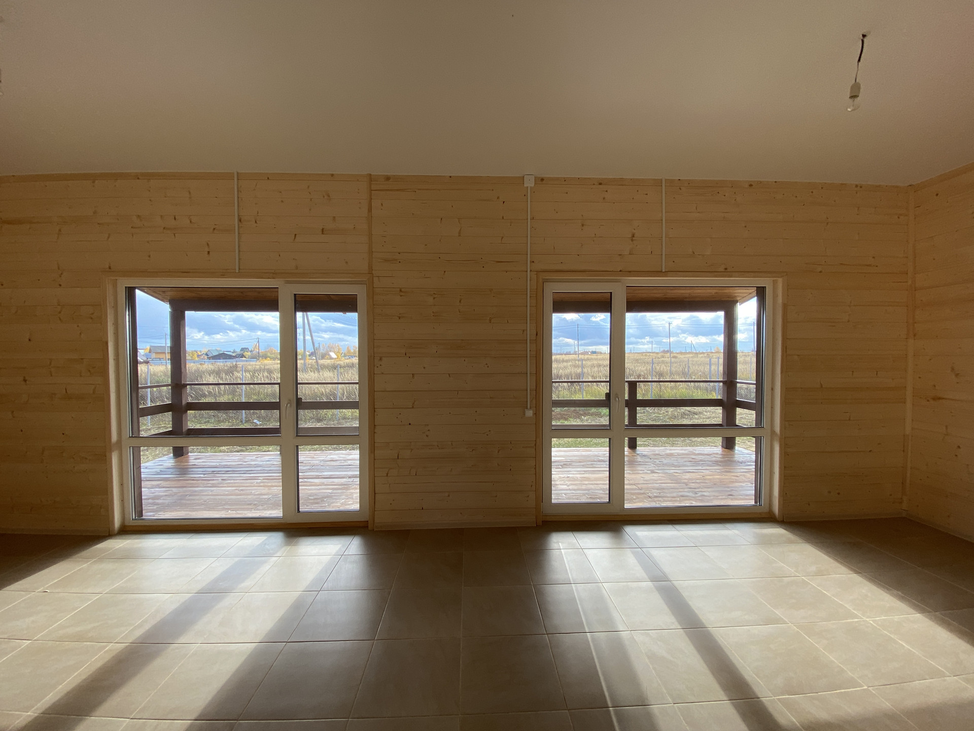 — Смонтирован натяжные потолки на первом этаже;