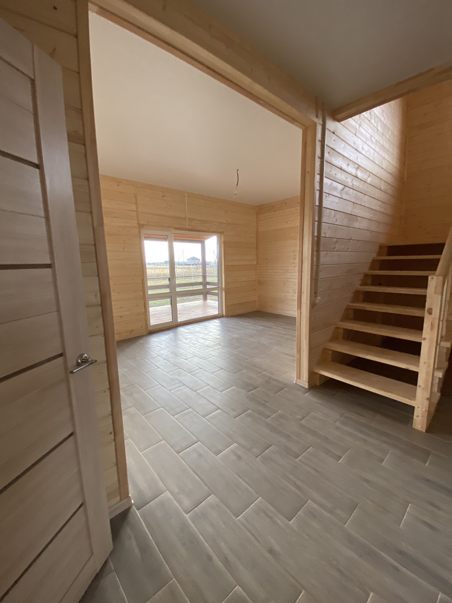 — Уложен керамогранит в санузлах, установлен а сантехника на 1-м этаже;
