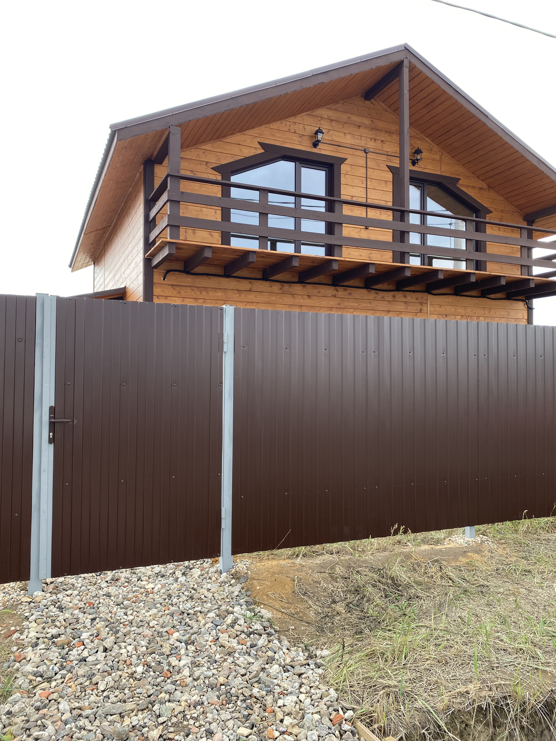 — Забор по периметру участка, установлены распашные ворота;