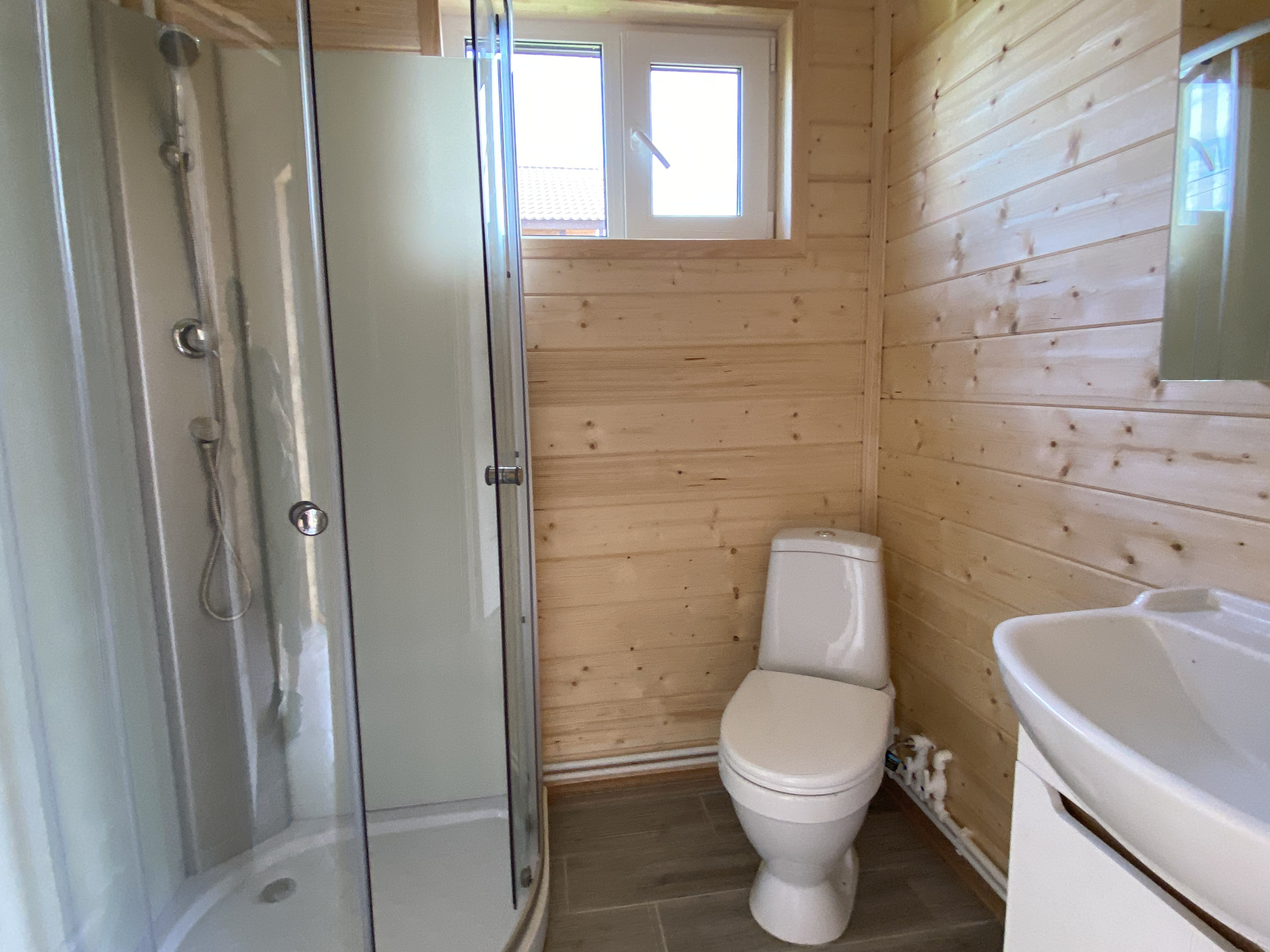 — Уложен керамогранит в санузлах, установлен а сантехника на 1-м этаже;