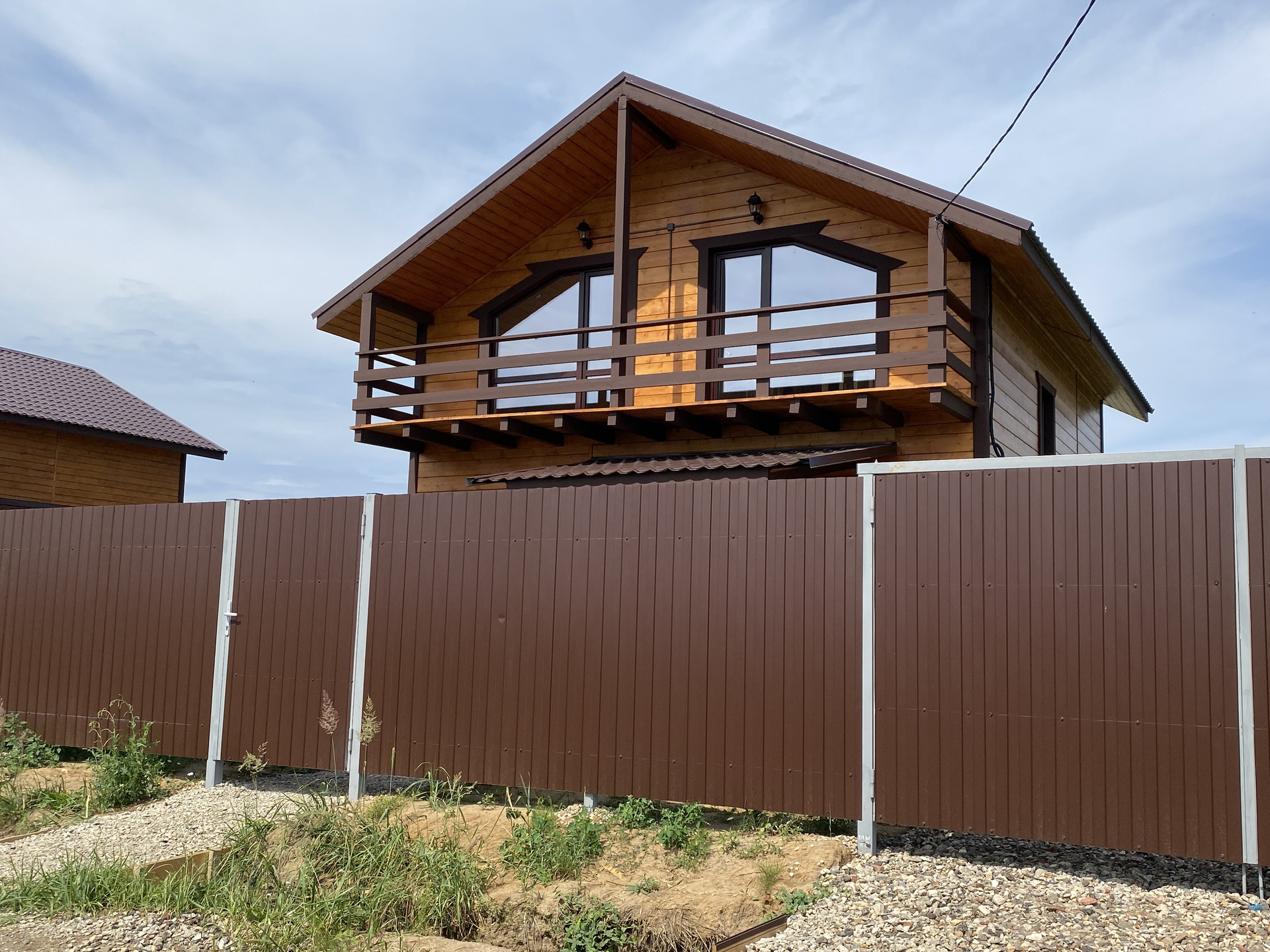 — Забор по периметру участка, установлены распашные ворота;