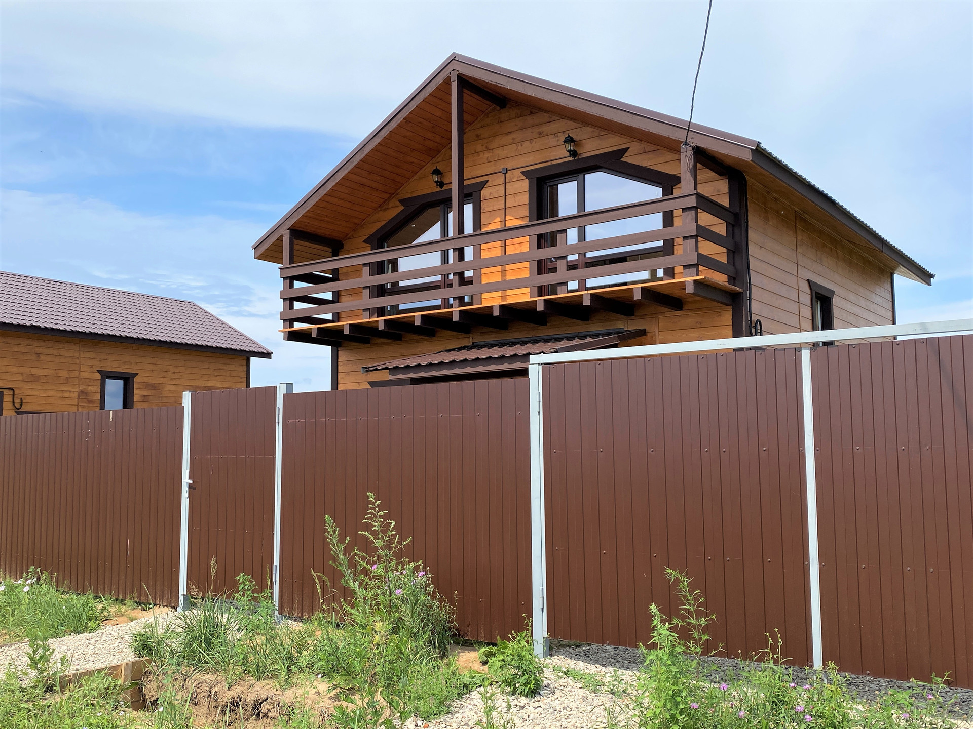 — Забор по периметру участка, установлены распашные ворота;