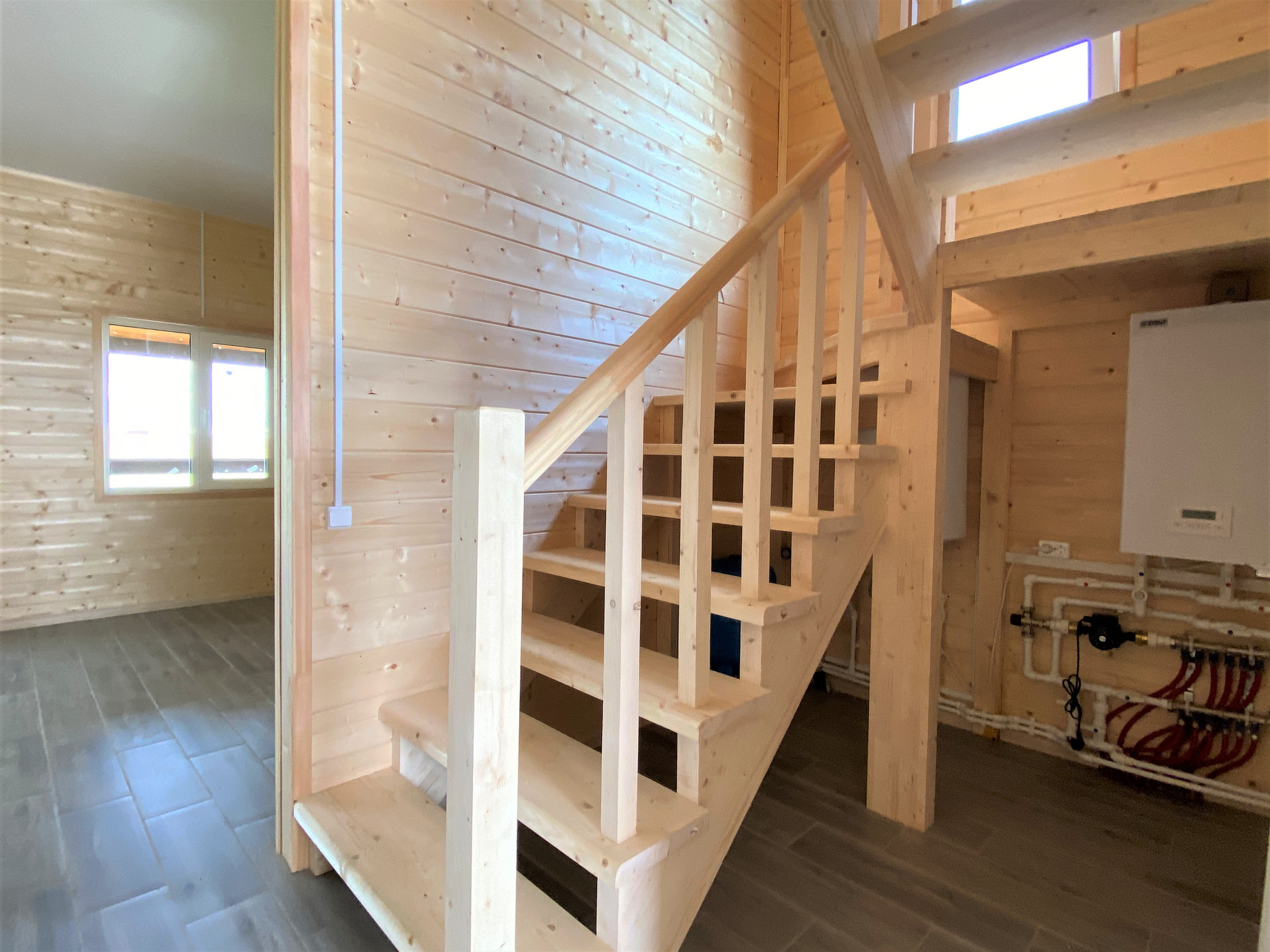 — Тёплый пол на первом этаже, радиаторы отопления на втором;