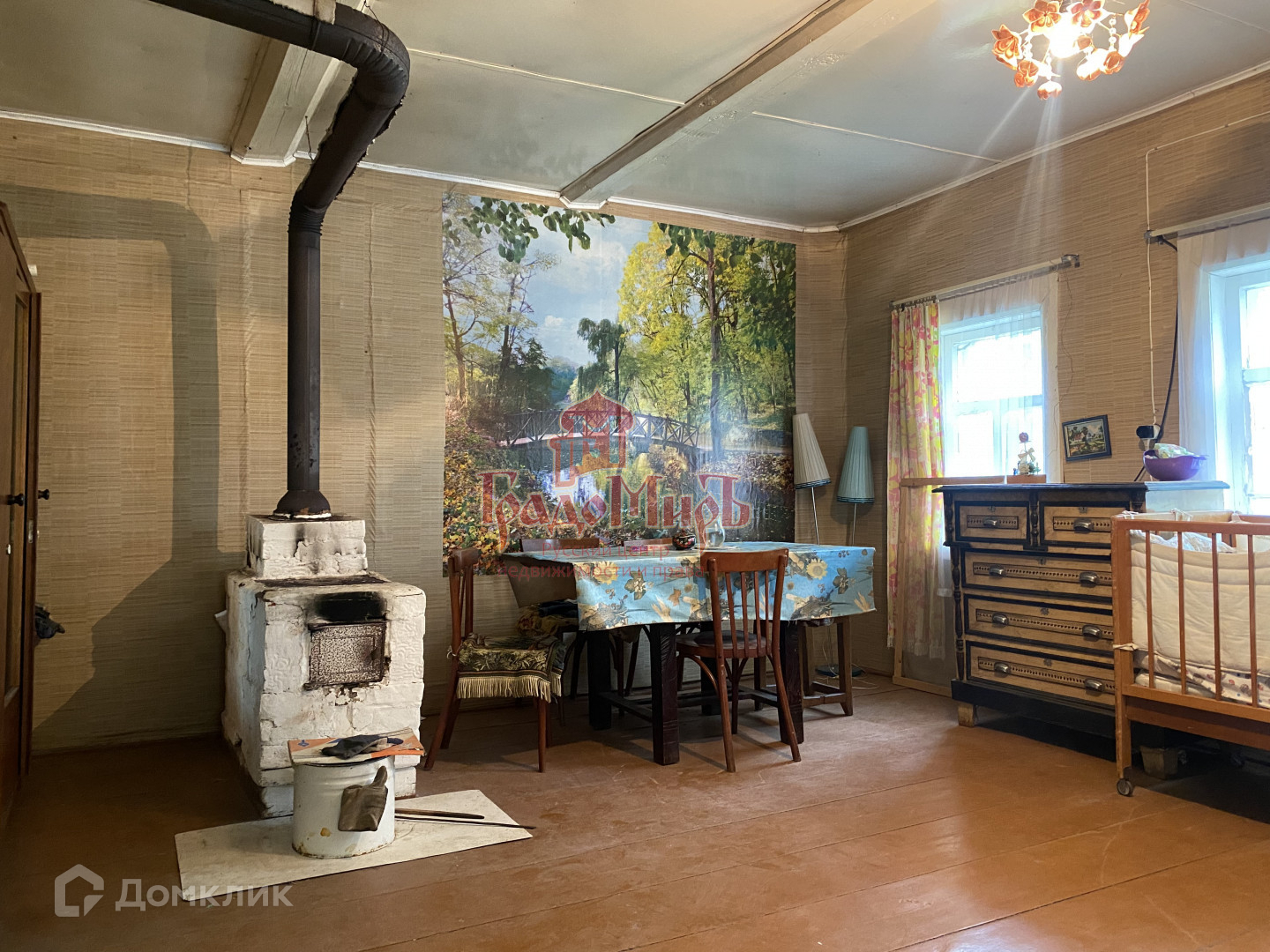 Дом из бревна, несмотря на свой возраст (дом 50-х годов постройки), выглядит крепким. Сухой чердак, отсутствие подтеков на потолке и стенах, крепкие полы и несущие стены, есть подпол. Дом отапливается русской печью с лежанкой. На кухне есть газовая плита.