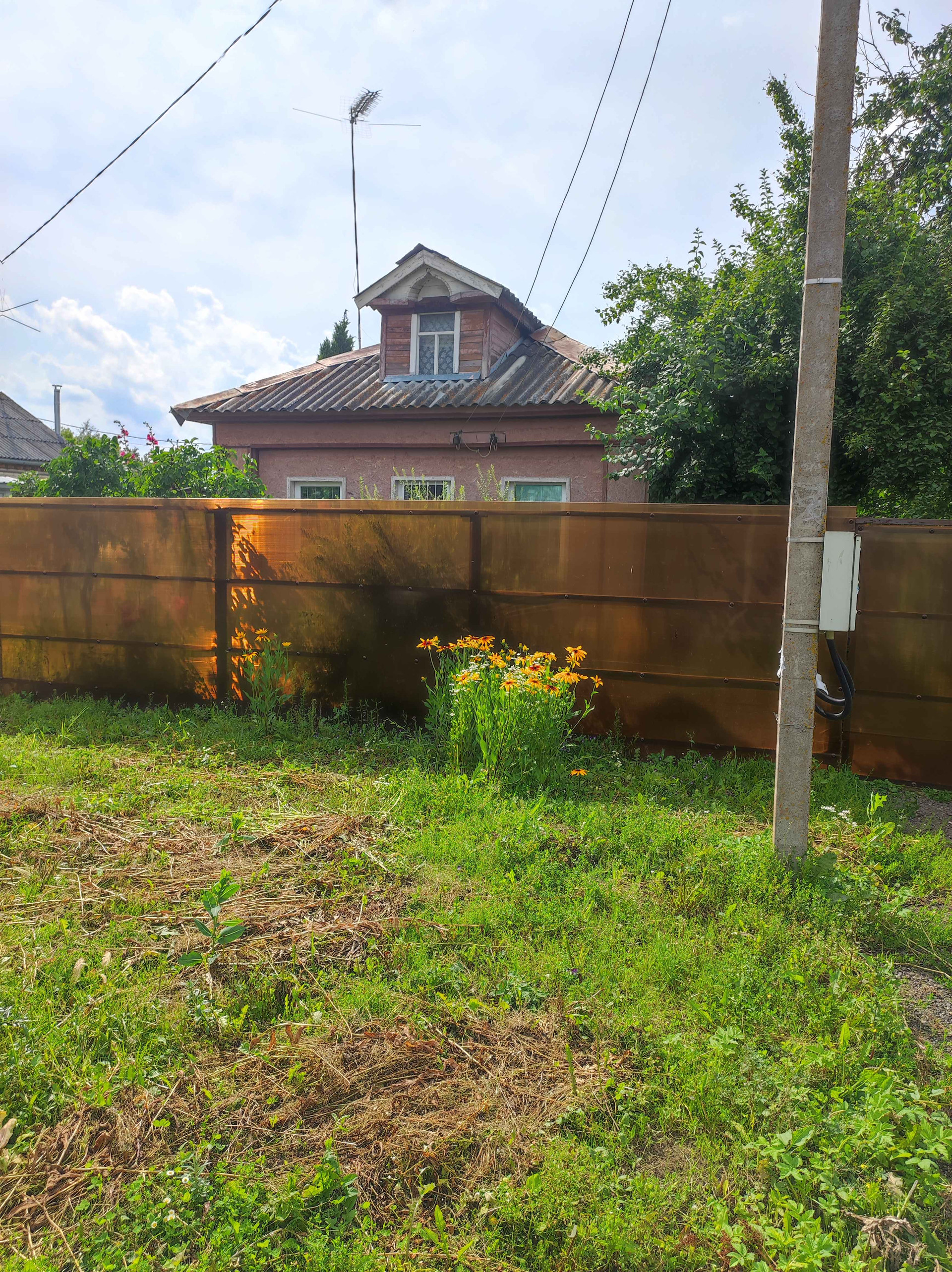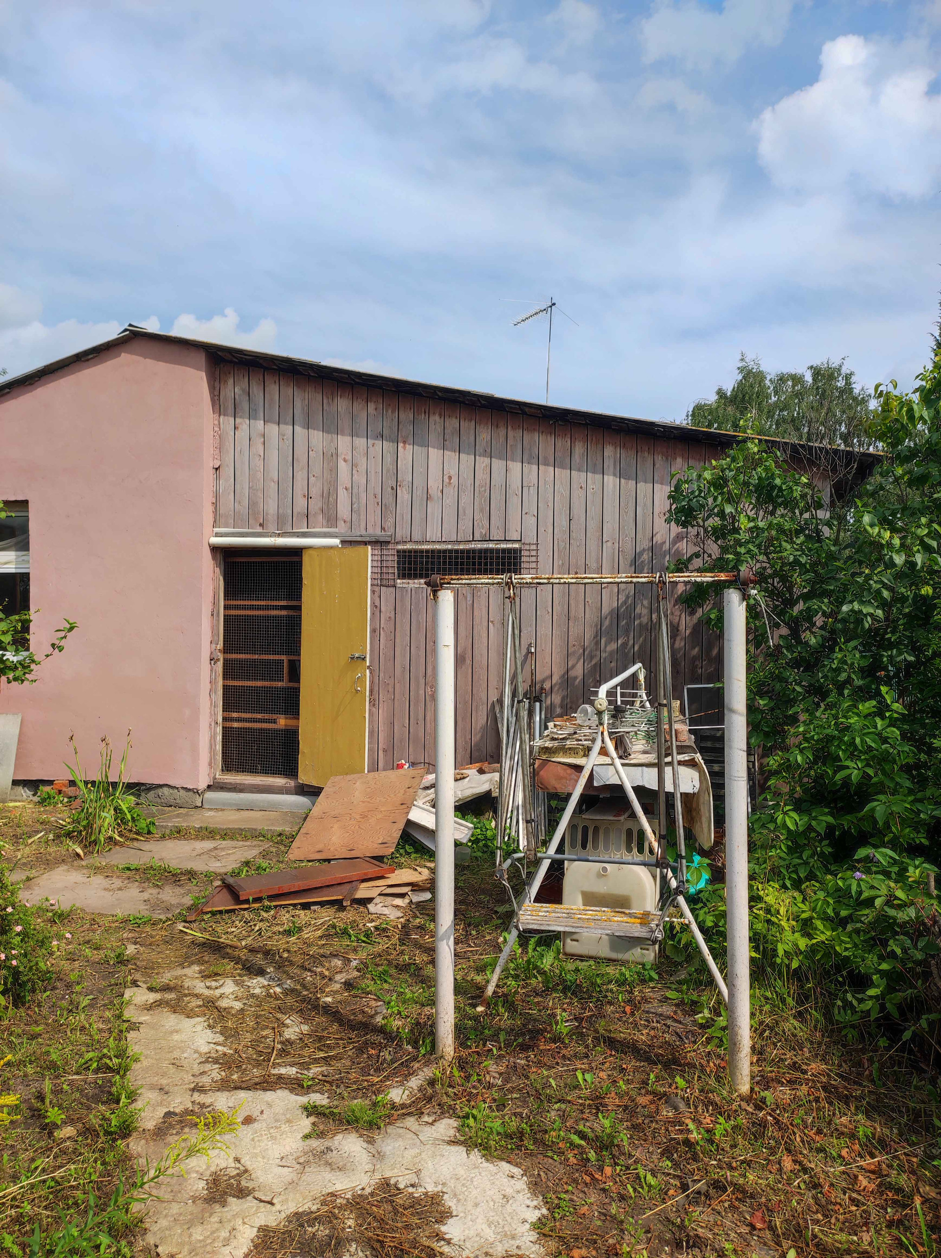 Одноэтажный деревянный дом с хозблоком в центре деревни. Автобусная остановка в 300-х метрах. Отличное место в перспективе для постройки дома.