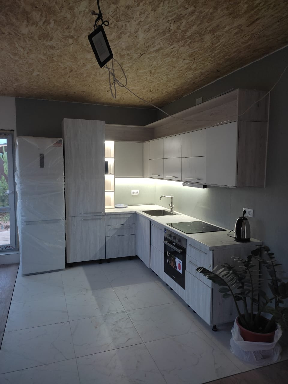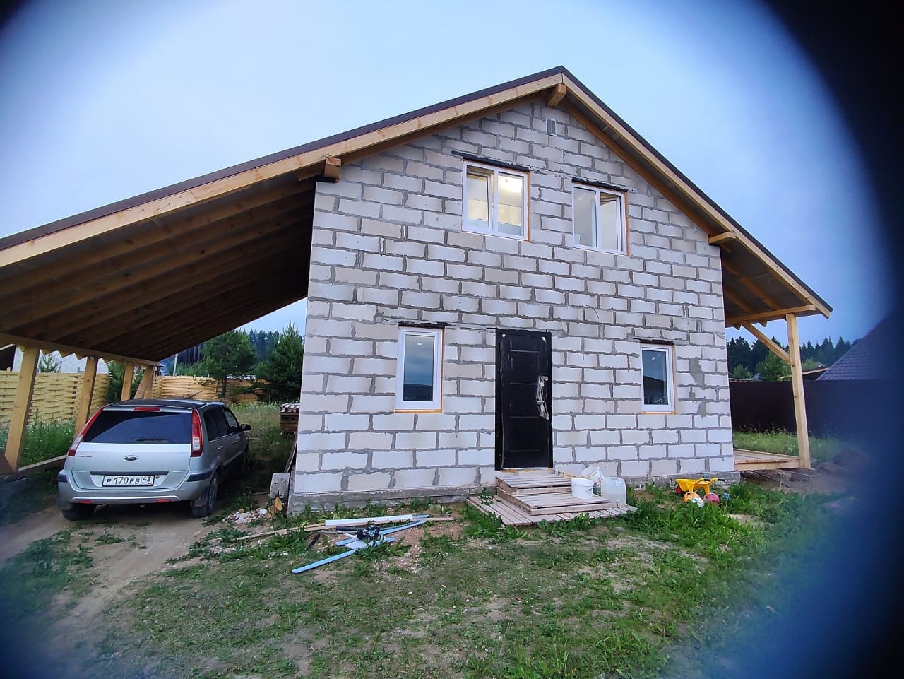 Дом 100.5 м2 + навес под гараж и терраса. Установлен забор.