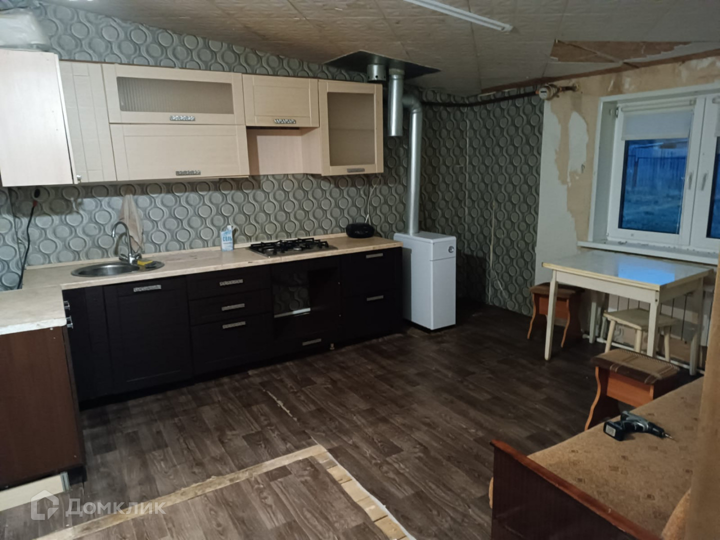 Заменены полы полностью по всему дому, установлены пластиковые окна .Облицовка кирпичем