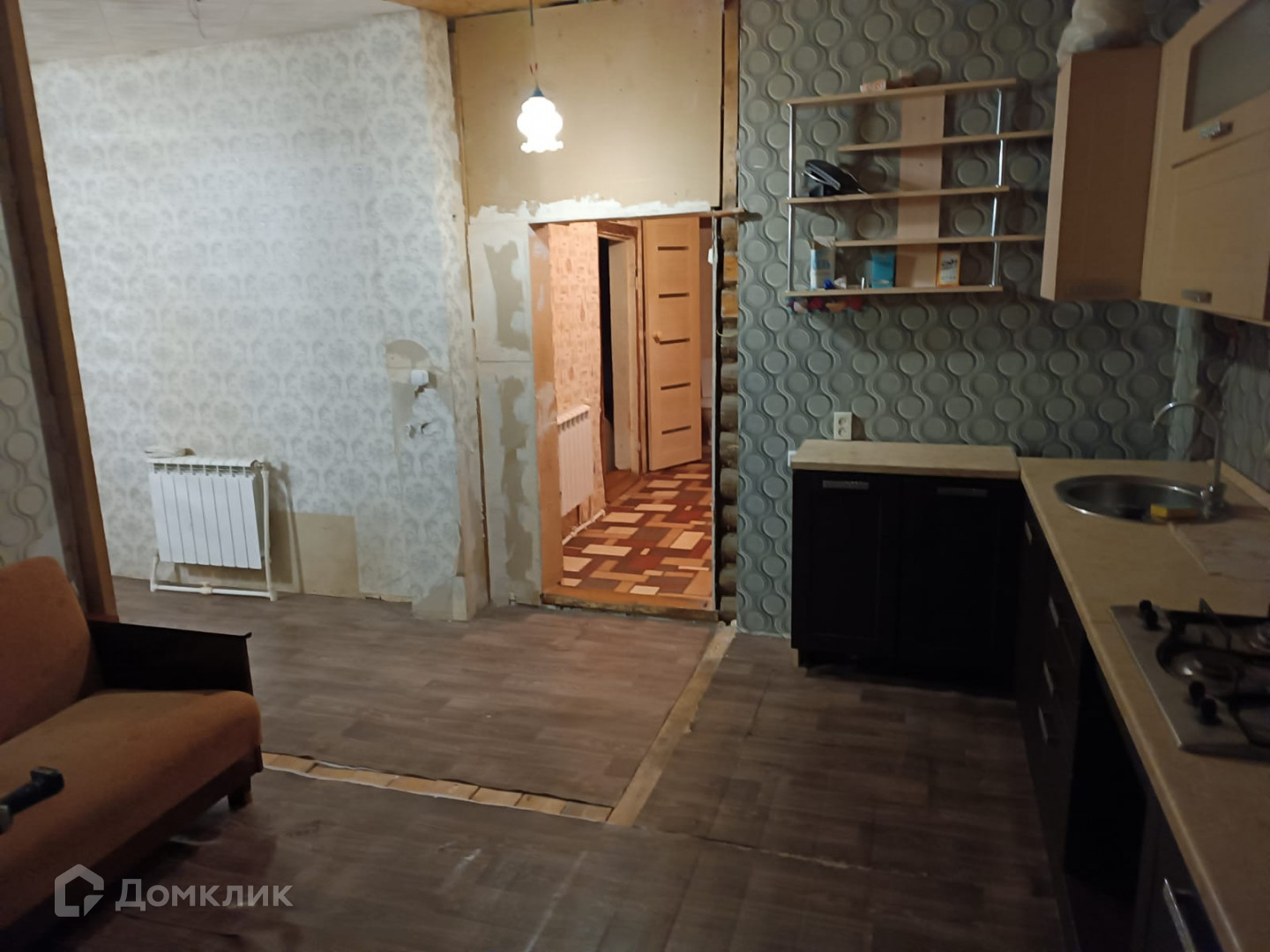 санузел ПВХ панели.  Требуется небольшой косметический ремонт, не требующий больших вложений. Газ, отопление, вода чистая (насосная станция). Пристройка (кухня гостиная 20кв м) пеноблок. Дом очень теплый, участок 10 соток, есть сарай для кур, кроликов, веранда