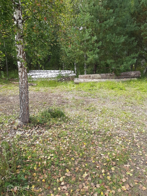 Есть деревья. Березы, осины, ёлка.