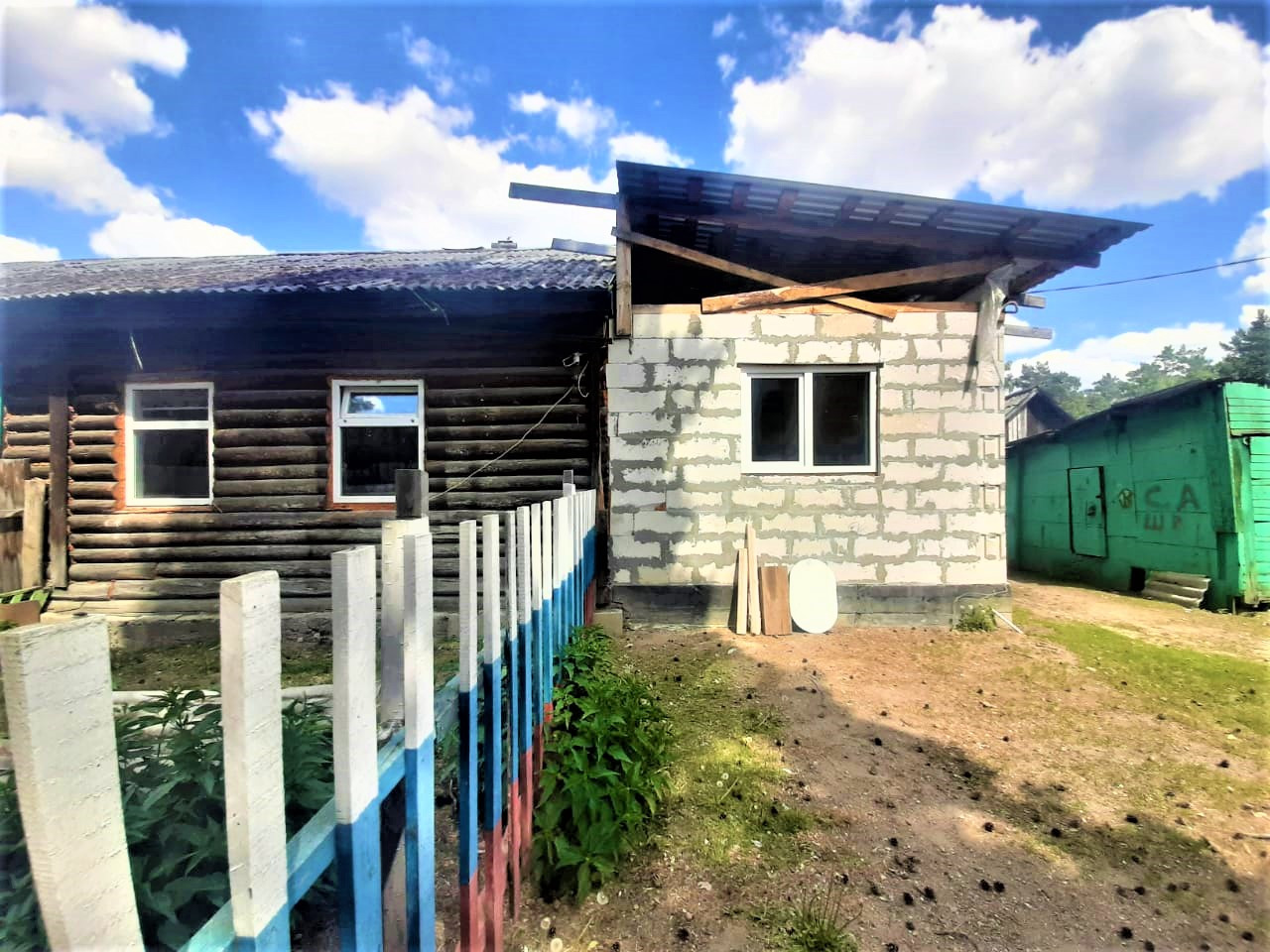 •    Дом из бруса, пристрой из твинблока, площадь 40 кв.м., 3 комнаты, кухня, санузел.