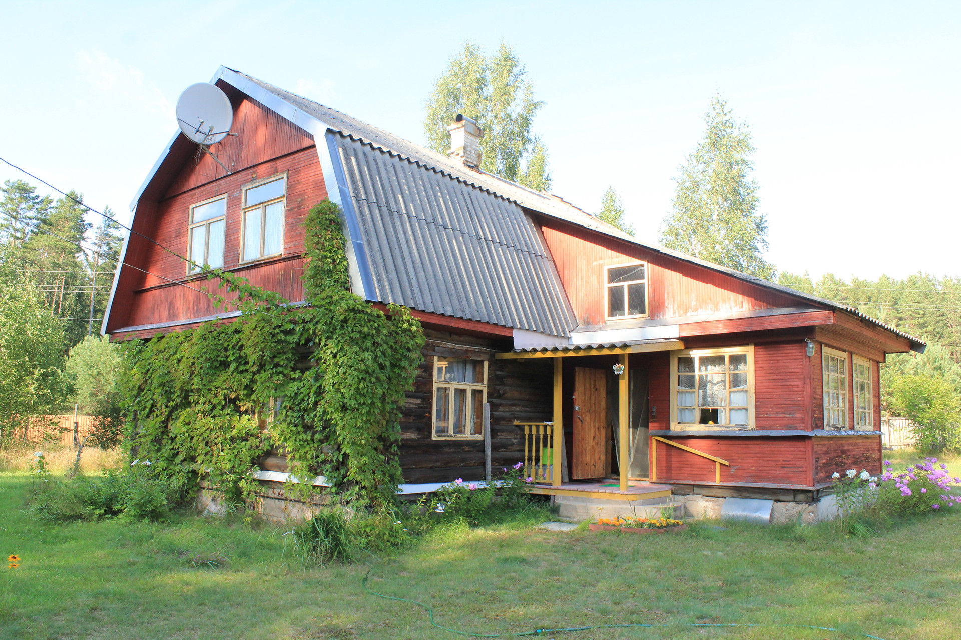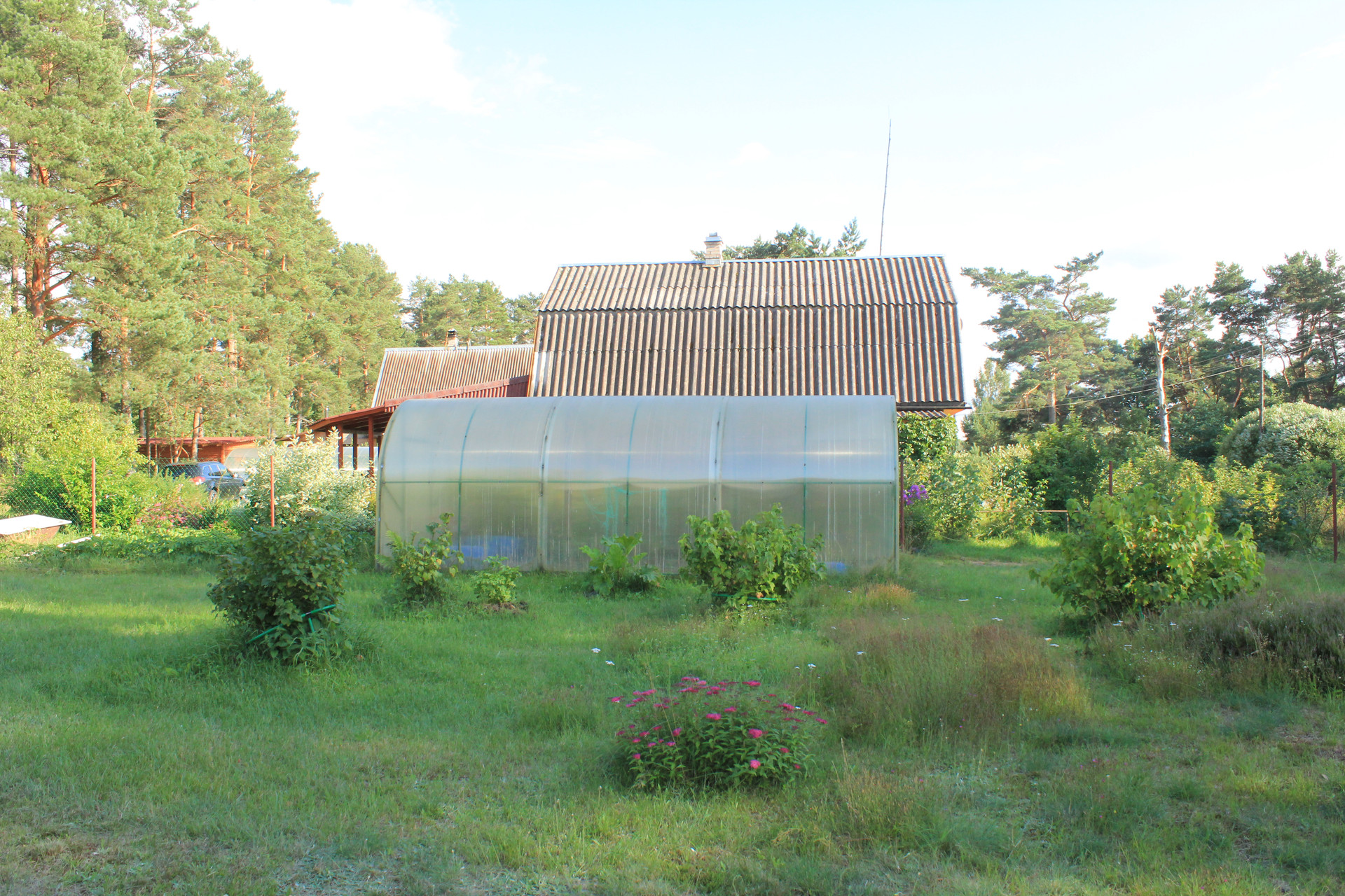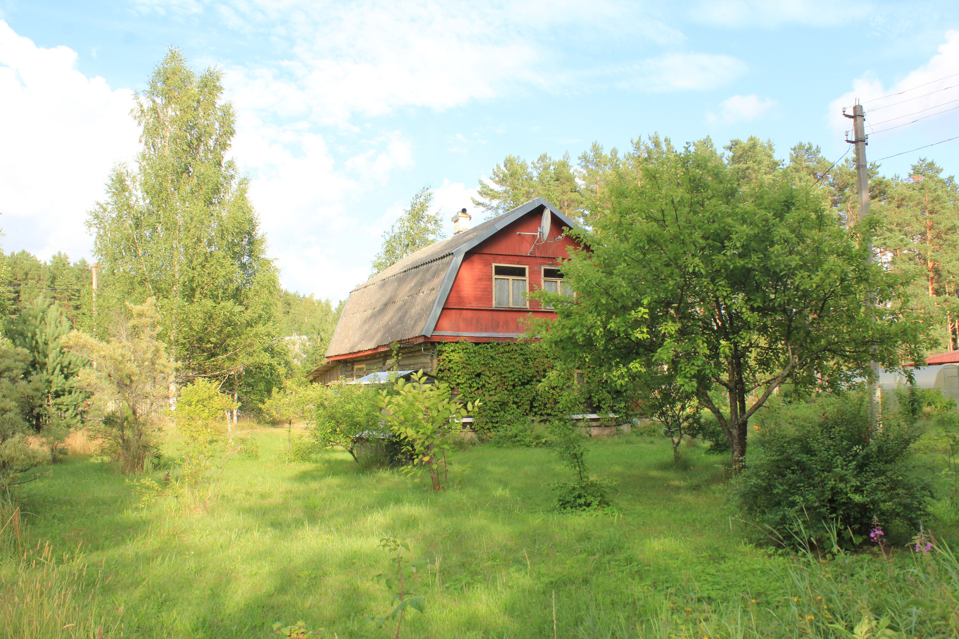 Участок классный! Площадь 22 сотки, светлый, сухой, огорожен забором, с красивыми пушистыми соснами, молодыми березками и декоративными кустами, а цветник, сад и аккуратный парник- приятно дополняют картину. Рядом с домом русская баня, куда же без нее. От парилки до озера 80 м, от будущих владельцев потребуется немного усилий по очистки тропинки и можно из парилки добежать к озеру). Место действительно приятное.