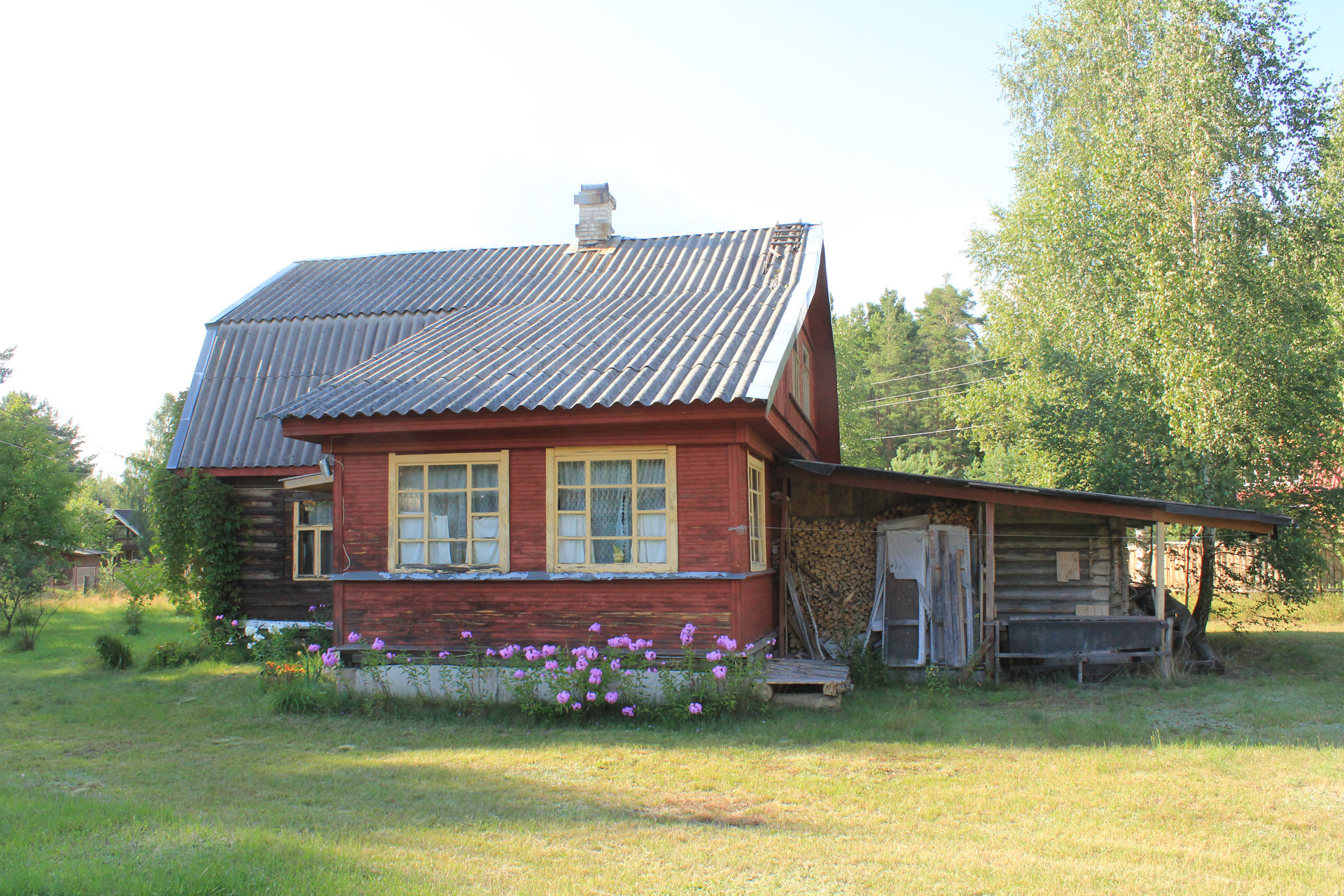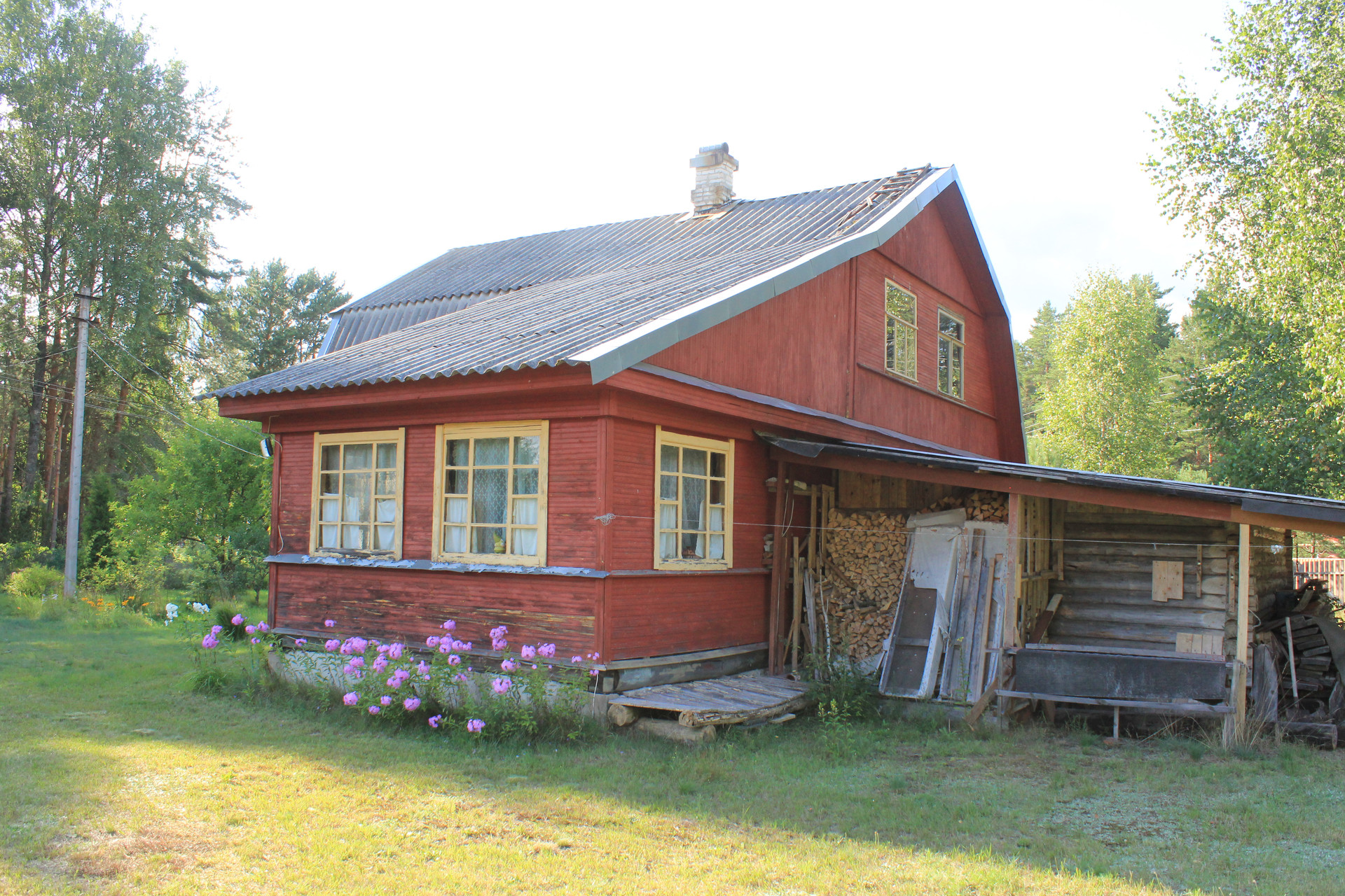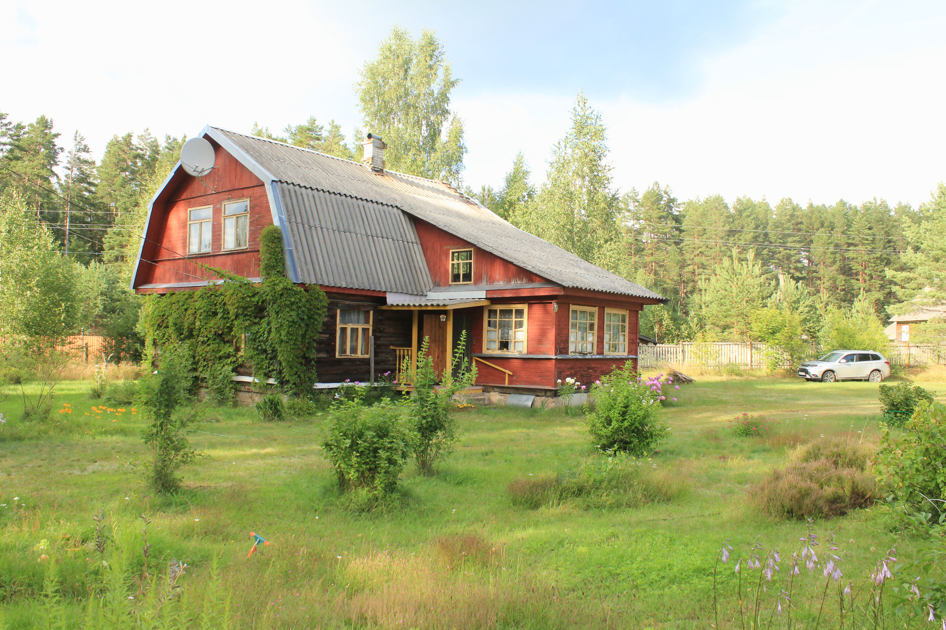 Участок классный! Площадь 22 сотки, светлый, сухой, огорожен забором, с красивыми пушистыми соснами, молодыми березками и декоративными кустами, а цветник, сад и аккуратный парник- приятно дополняют картину. Рядом с домом русская баня, куда же без нее. От парилки до озера 80 м, от будущих владельцев потребуется немного усилий по очистки тропинки и можно из парилки добежать к озеру). Место действительно приятное.