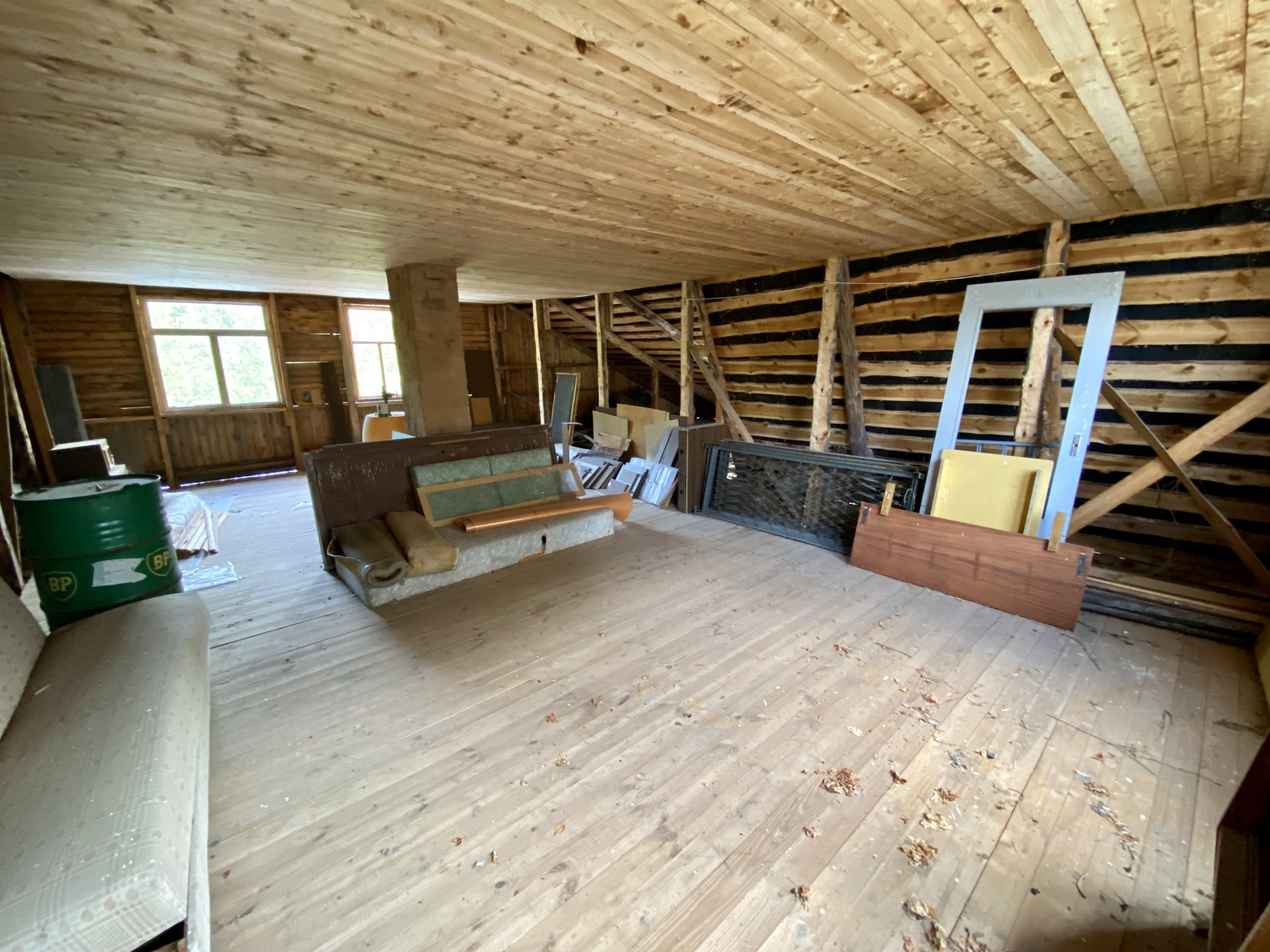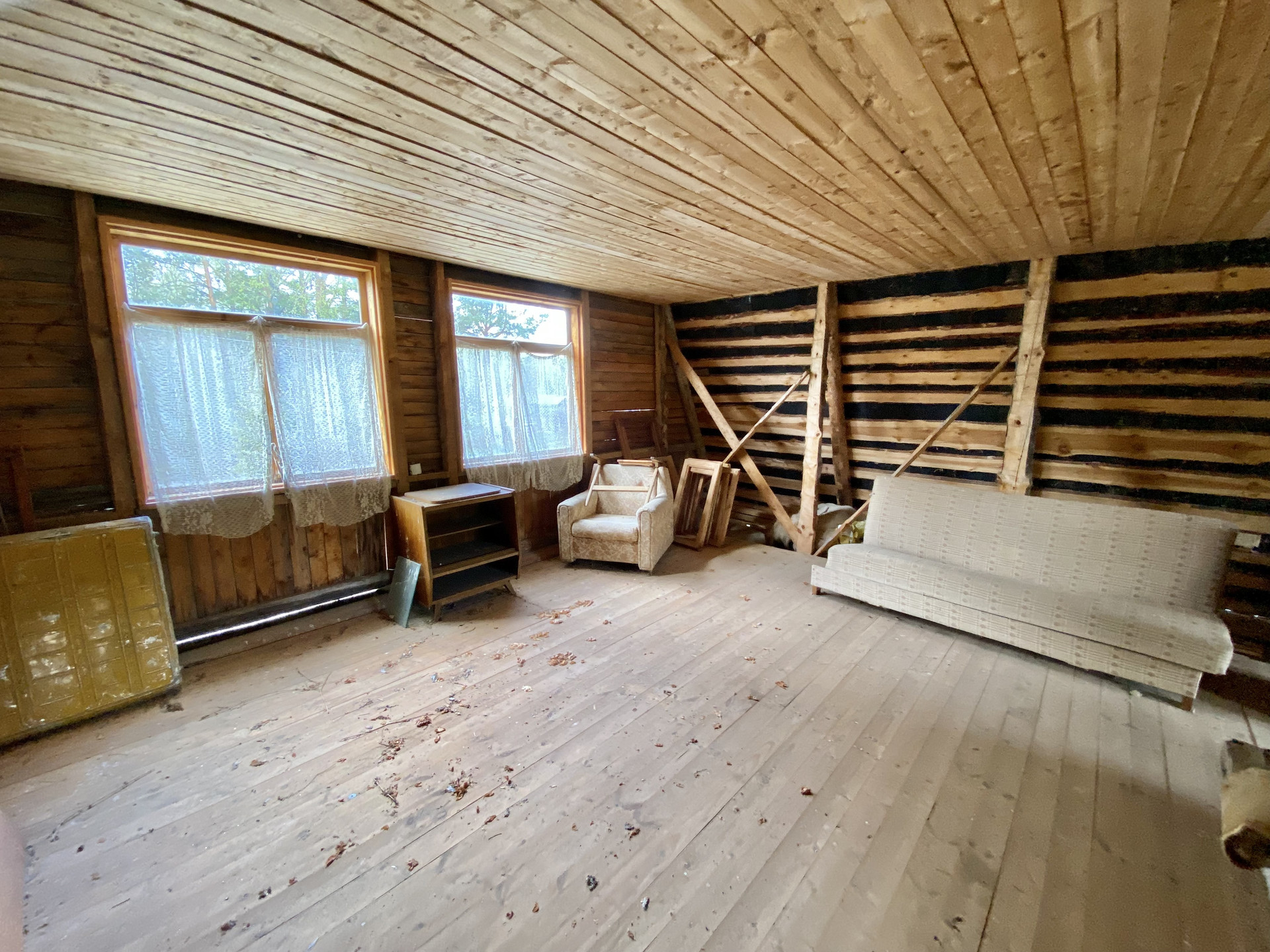 Дом двухэтажный, бревенчатый сруб 1997 г.п., общей площадью, с пристройками и верандой 100 кв.м., теплая часть 51,7 кв.м., на ленточном фундаменте, кровля-шифер. Печное отопление, трёхфазное электричество 15 кВт, питьевая вода из собственного колодца около дома, туалет- деревенский вариант, отдельно стоящее строение. Внутри дома 3 комнаты, кухня, светлая веранда. Второй этаж без чистовой отделки- одно большое помещение.