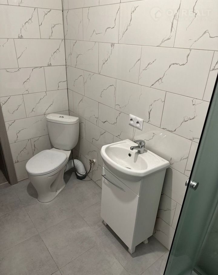 Санузел отделан плиткой.